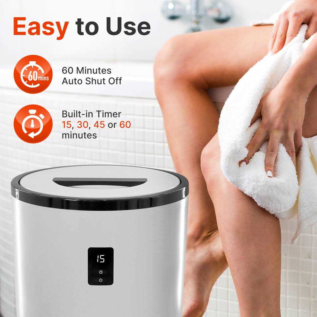 Built-in timer for heater: Conveniently control your towel warming experience with a built-in timer offering options for 15, 30, 45 or 60 minutes of heating time. Get cozy and wrap yourself in a warm, heated towel after every shower or bath Large Capacity: The Comfier towel warmer measures 12″ x 12″ x 21.5″ inches, making it big enough to hold two large bath towels or one personal throw blanket. Its wide cavity design makes it ideal for use by the whole family. Easy to Use One-Touch Design: Enjoy a hassle-free towel warming experience with a simple one-touch button. The heating can be quickly turned on and off with just a press. The fragrant disk holder keeps your towels smelling great Lightweight and Safe: The automatic shut-off feature ensures safety when using this towel warmer. Its lightweight design makes it easy for anyone to move it around the house. The compact size is perfect for space-saving in apartments. Ideal Gift Option: Give the gift of comfort and luxury with this towel warmer. Perfect for birthdays and weddings, it makes a unique and cozy addition to any home bathroom or bedroom. Enhance your bathing experience with this must-have accessory.