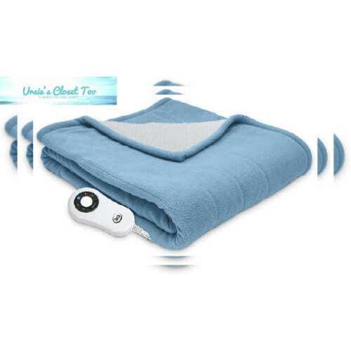 Serta Microfleece Sherpa Electric Heated Warming Throw Blanket Slate Blue