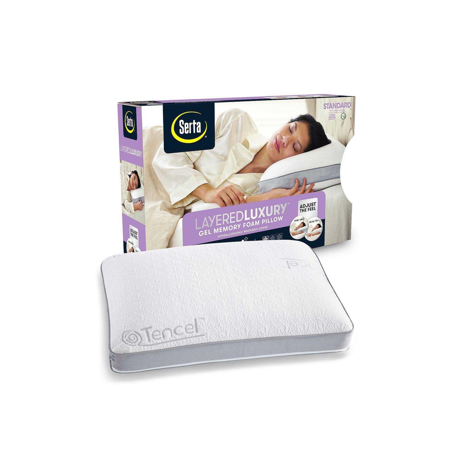 Serta Layered Luxury Gel Memory Foam Pillow, White, Standard