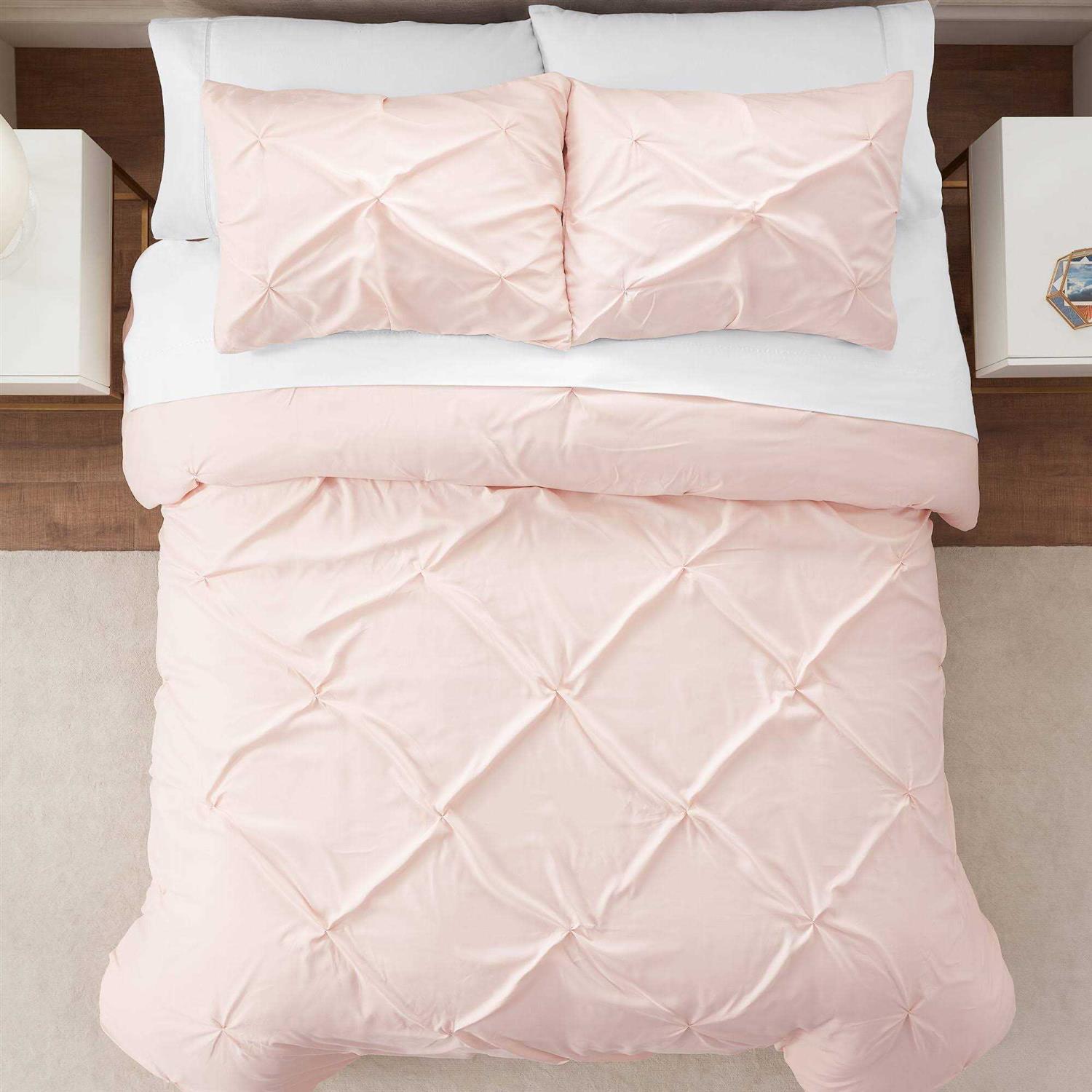 Serta Simply Clean Antimicrobial Pleated 3 Piece Duvet Set – Blush – Twin XL