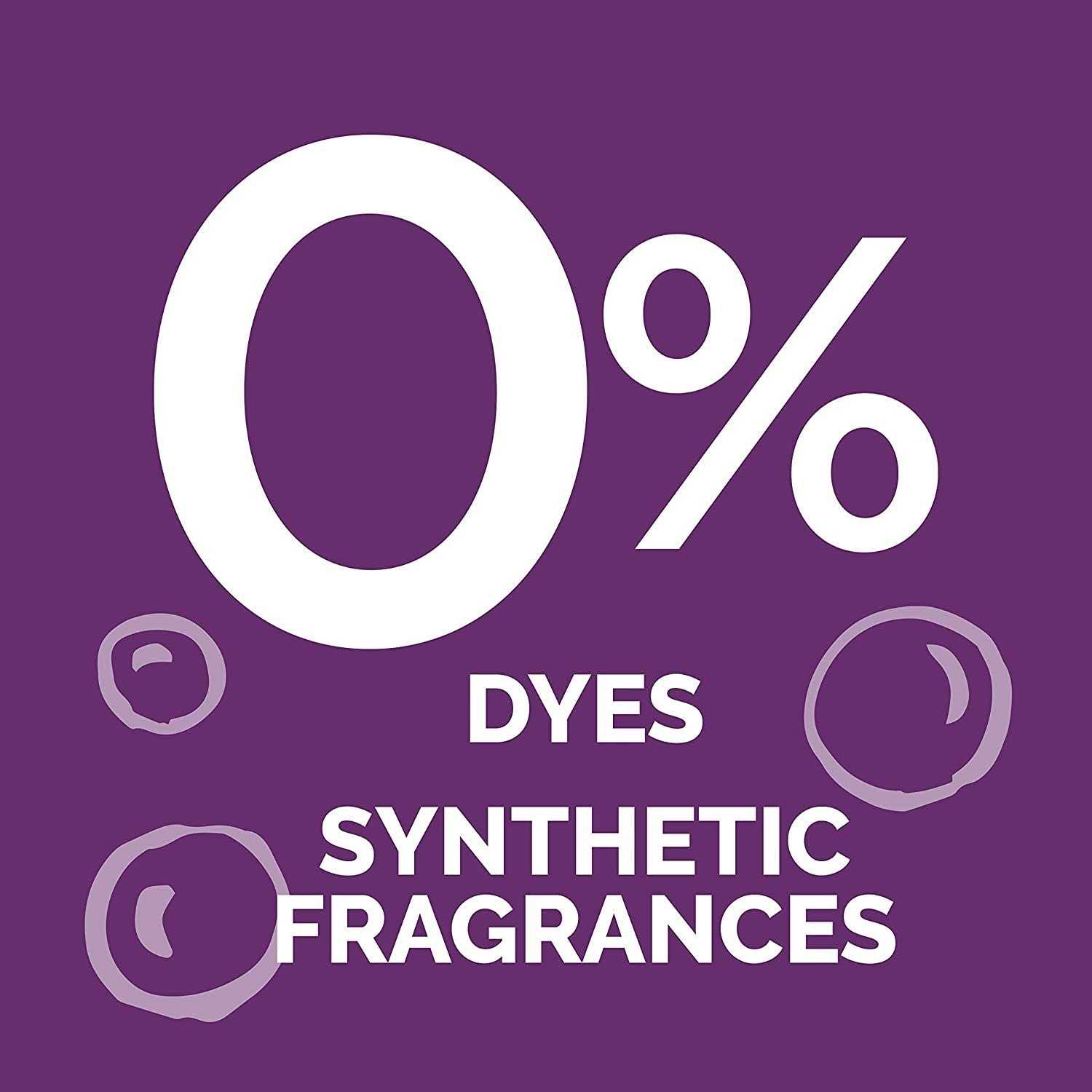 - Free of dyes and synthetic fragrances (unscented, fragrance free)