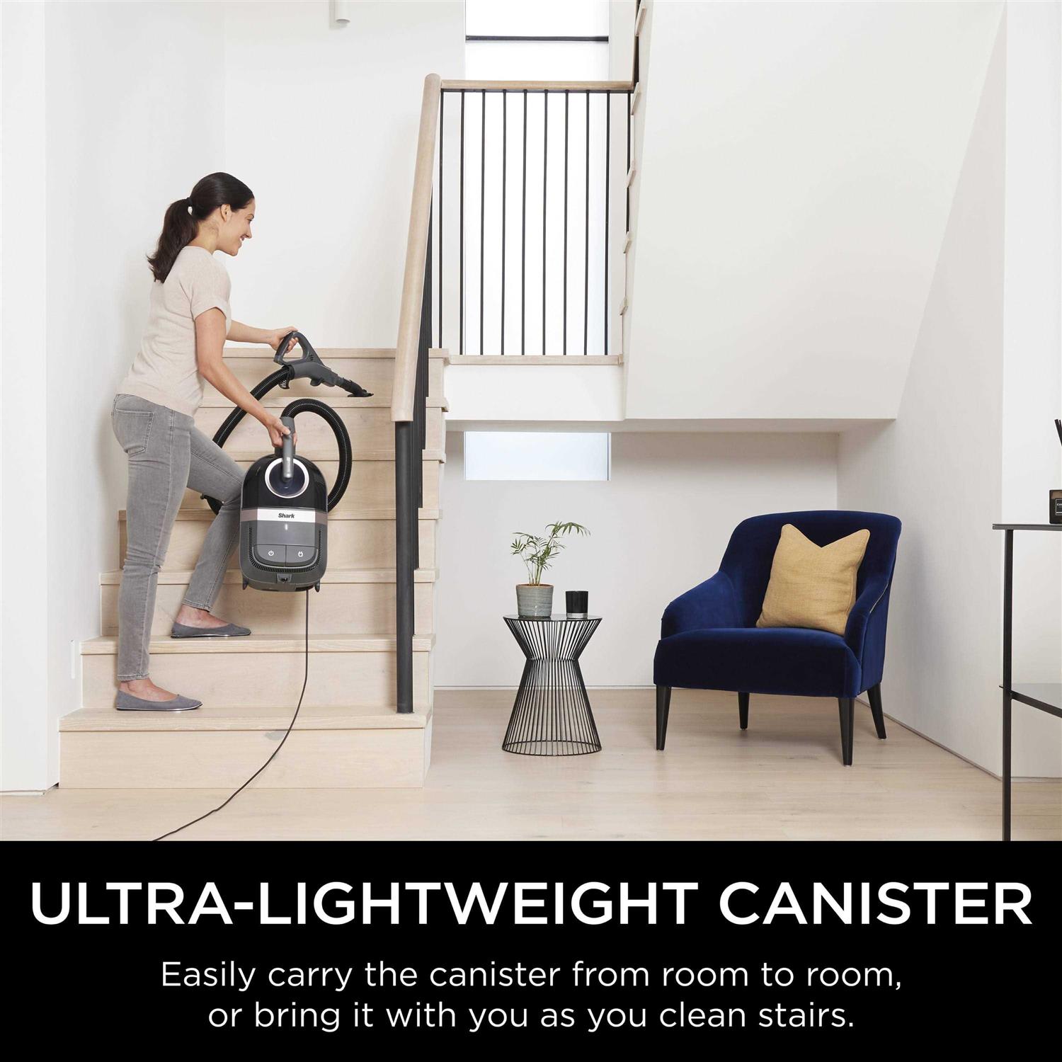 Experience powerful Shark suction, now in a compact canister vacuum. The lightweight 9-pound canister is built with Smooth Glide wheels, so it easily glides along as you clean from floor to ceiling. Anti-Allergen Complete Seal traps over 99.9% of dust, dander, and allergens inside the vacuum.