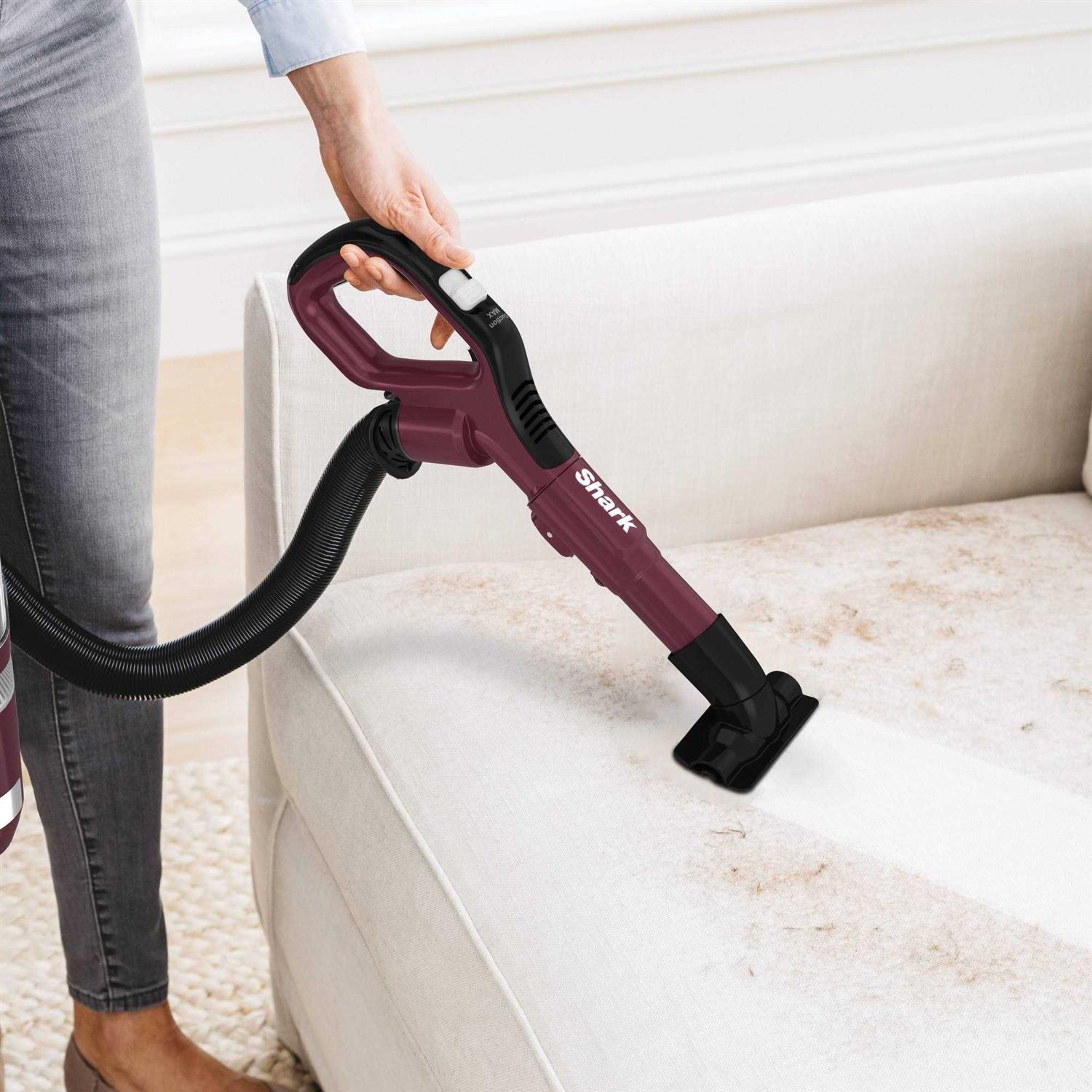 This Shark Lift-Away comes with a PowerFins brushroll, a no-bristle system to deep-clean and pick up more in every pass (vs. original DuoClean)—all with no hair wrap, thanks to the self-cleaning brushroll. It also includes Anti-Allergen Complete Seal Technology with a filter to trap over 99.9percent of dust and allergens inside the vacuum, keeping them out of the air you breathe. (Based on ASTM F1977 of particles .3 microns or larger.) LED headlights on the nozzle reveal hidden debris around your home, while Advanced Swivel Steering lets you easily maneuver in and out of tight spaces.