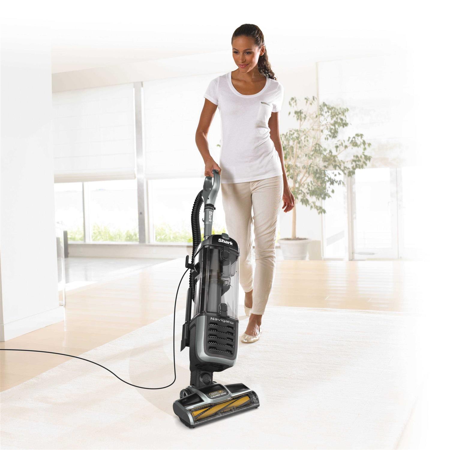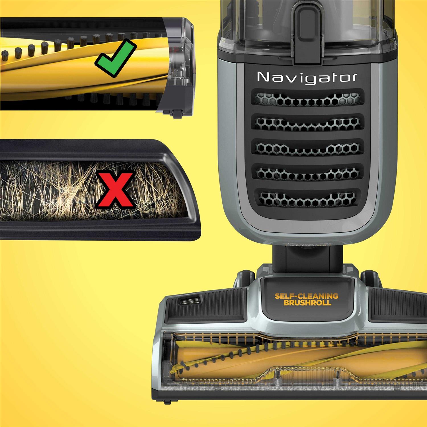 The Shark Navigator Pet Pro Upright Vacuum is your answer to stubborn pet hair and heavy-duty cleaning tasks. With an extendable hose for up to 12 feet of total reach for cleaning above floors 3XL capacity and a self-cleaning brushroll for nonstop hair removal this vacuum cleaner is made for a floor-to-ceiling deep clean. The vacuum that deep-cleans now cleans itself. The self-cleaning brushroll removes long hair short hair and pet hair from your brushroll delivering non-stop hair removal. Powerful upright vacuum suction to pick up embedded debris stubborn pet hair and more. Lightweight design allows for easy maneuverability and portability. 3XL capacity for long cleaning sessions with fewer interruptions to empty the dust cup. Anti-Allergen Complete Seal Technology and a HEPA filter trap dust and allergens inside the vacuum cleaner. An extendable hose for up to 12 feet of total reach gives you access to hard-to-clean areas above the floor like stairs furniture and more. Swivel Steering provides heightened control so your vacuum can maneuver around your home with ease.