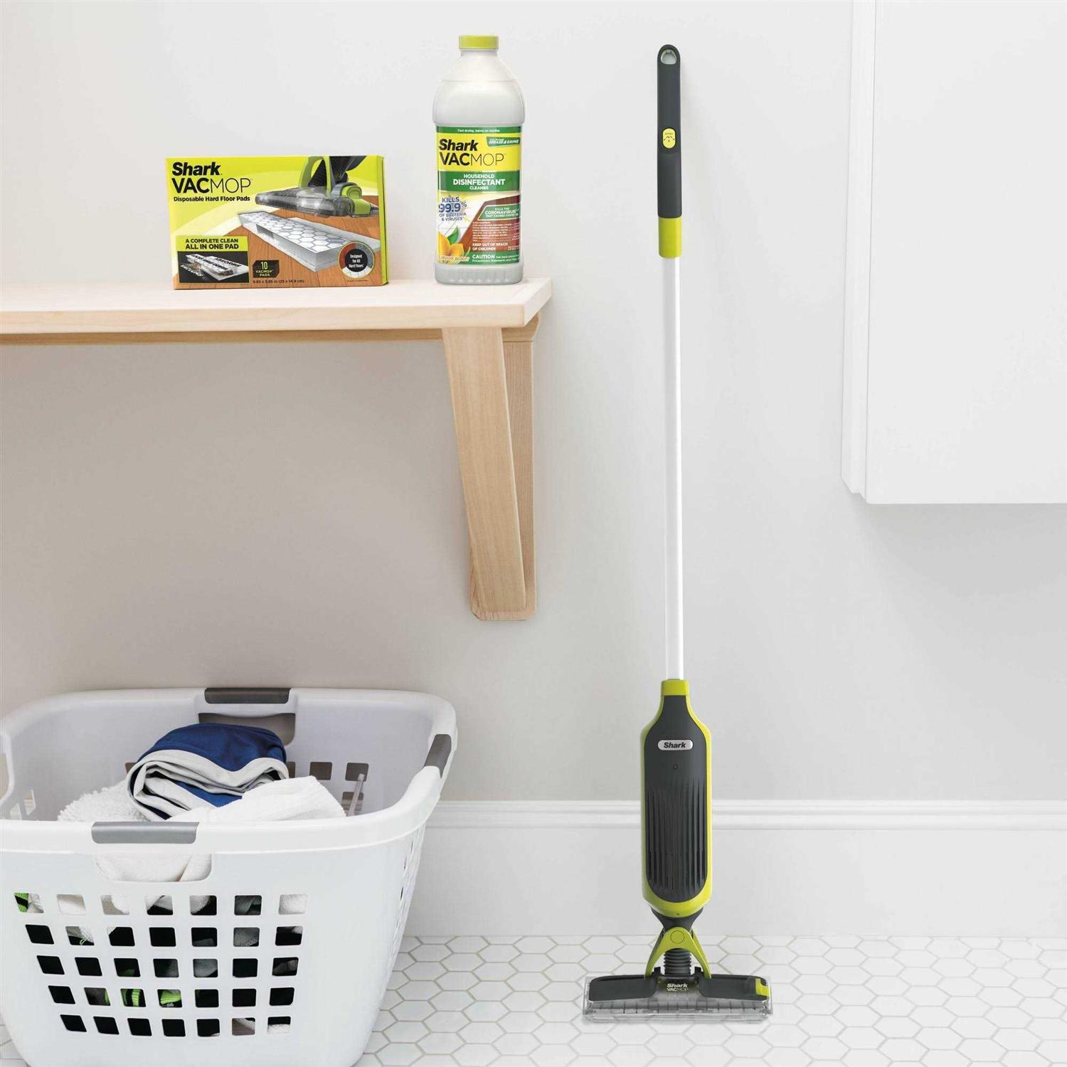 The Shark VACMOP combines powerful suction & spray mopping in one disposable pad. Vacuum dry debris, scrub wet messes, & toss the pad. Includes cordless charging, 2 disposable pads, and a 12-oz. bottle of VACMOP multi-surface hard floor cleaner. Powerful suction + spray mopping—a complete clean in one pad Disposable VACMOP Pad vacuums up what other pads push around Powerful suction locks away dirt inside the disposable VACMOP Pad Spray mop scrubs away stuck-on grime, leaving a streak-free finish No-touch disposal—never touch a dirty pad again Replace the pad with each use – no maintenance necessary. Cordless with rechargeable lithium-ion battery Lightweight vacuum mop at under 5 lbs.