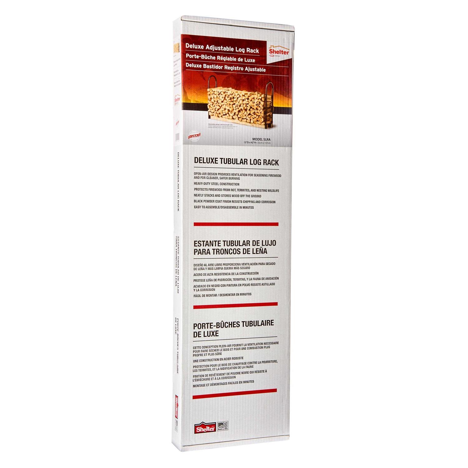 Black powder-coated painted tubular steel log rack kit. Add 2X4s of any length to customize the storage you need. 2X4s not included. Helps protect your firewood from rot, termites, and insects. Easy-to-assemble and disassemble. 42 In. H. x 13 In. D. Type: Tubular Depth: 13 In. Height: 42 In. Color: Black