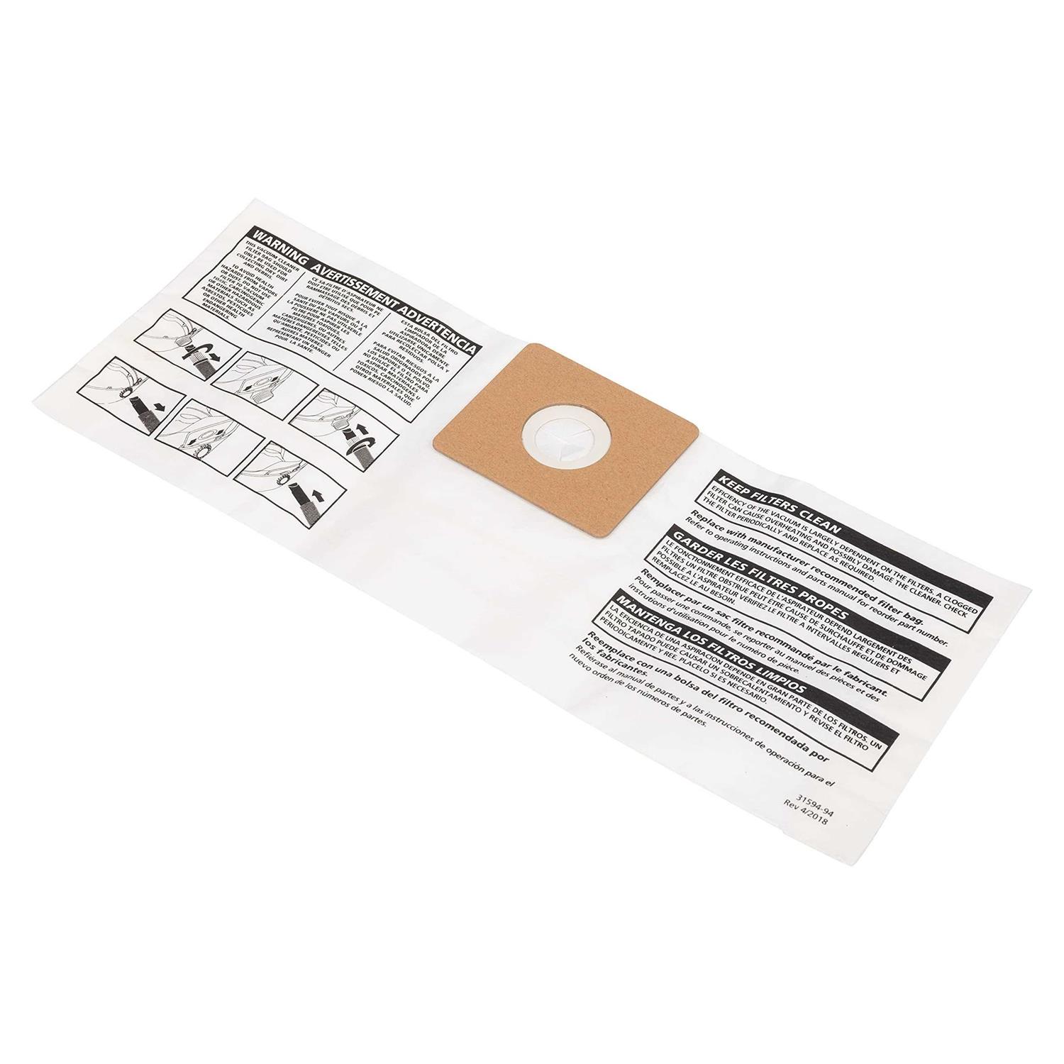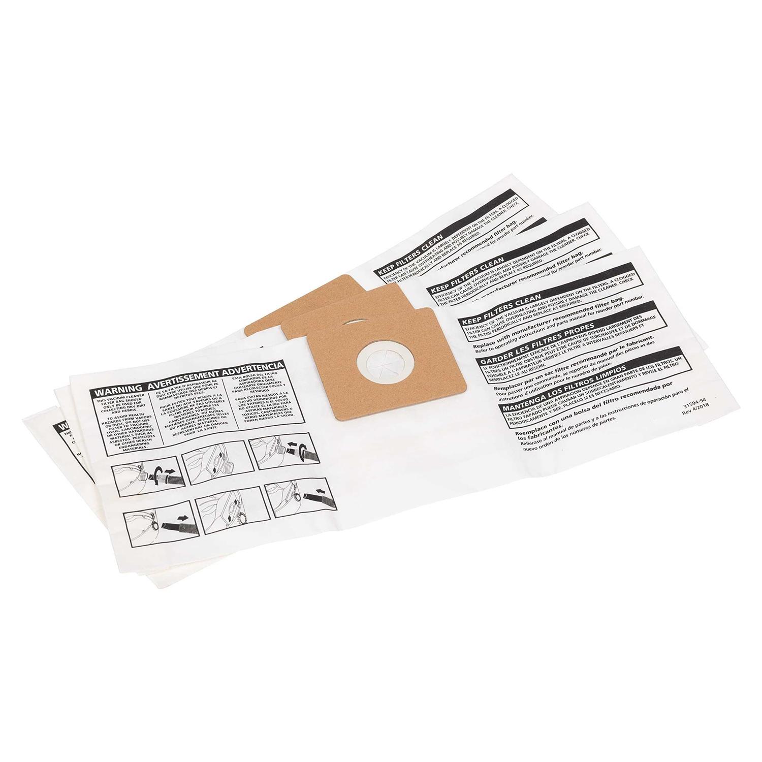 For use with 5.7l All Around Vac. High Efficiency Collection filter bag for 5.7l All Around makes dry pickup easy. Just throw bag and dirt away. Easy clean up, just throw dirt and bag away.