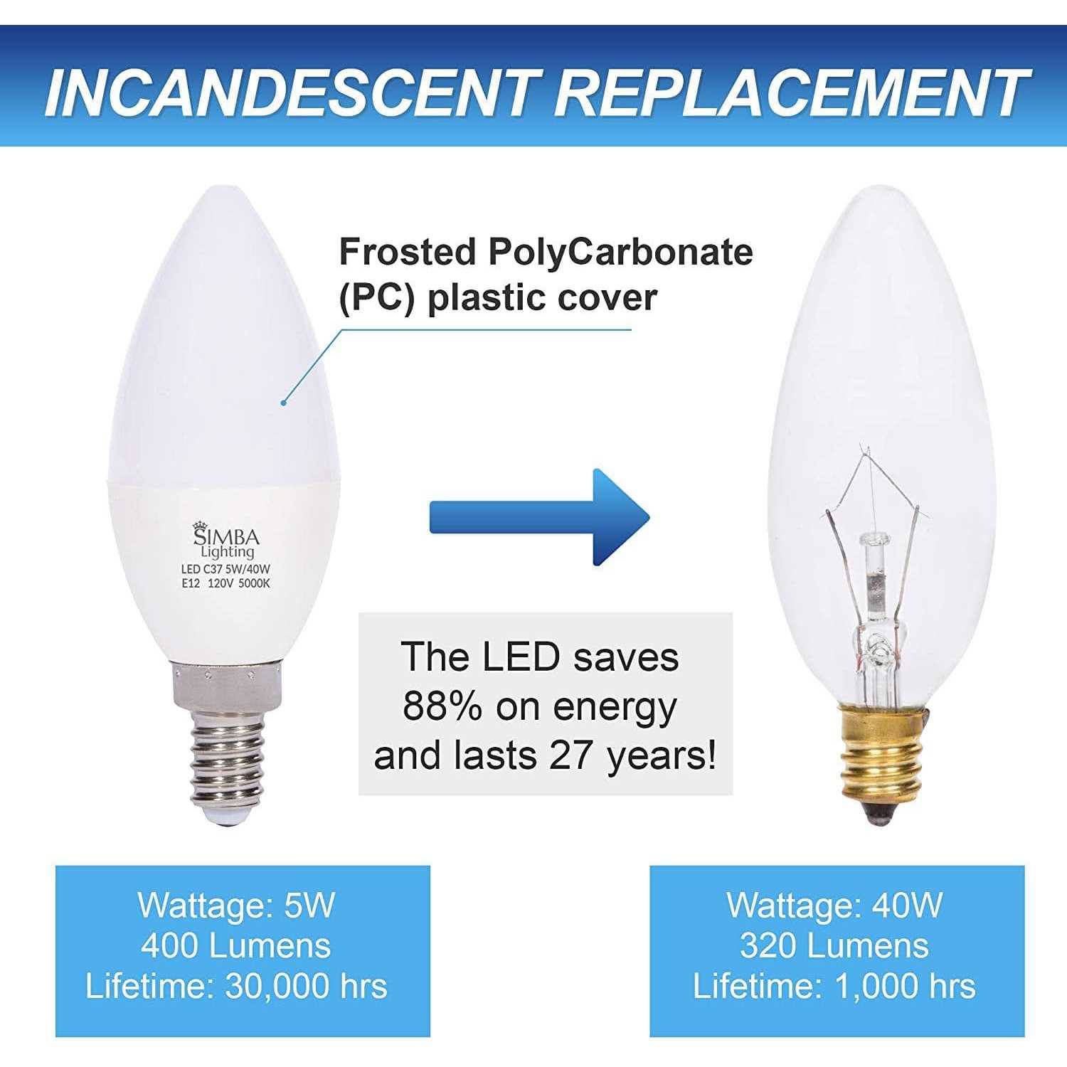 Simba Lighting LED Candelabra Light Bulbs B11 Candle Shape E12 Base
