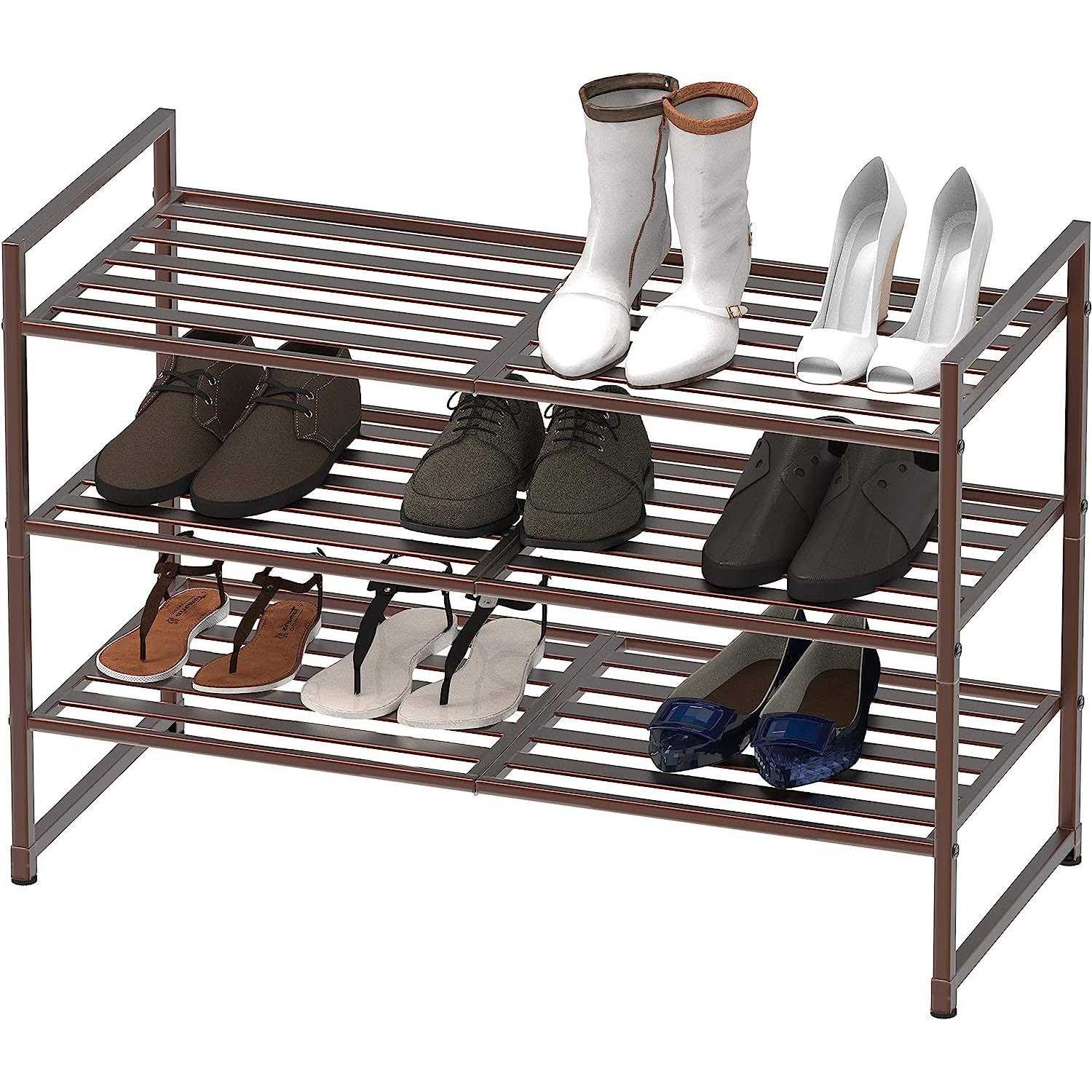 - Simple Houseware 3-Tier Stackable Metal Panel Shoe Racks with Shelves for Storage Organizer, Silver.