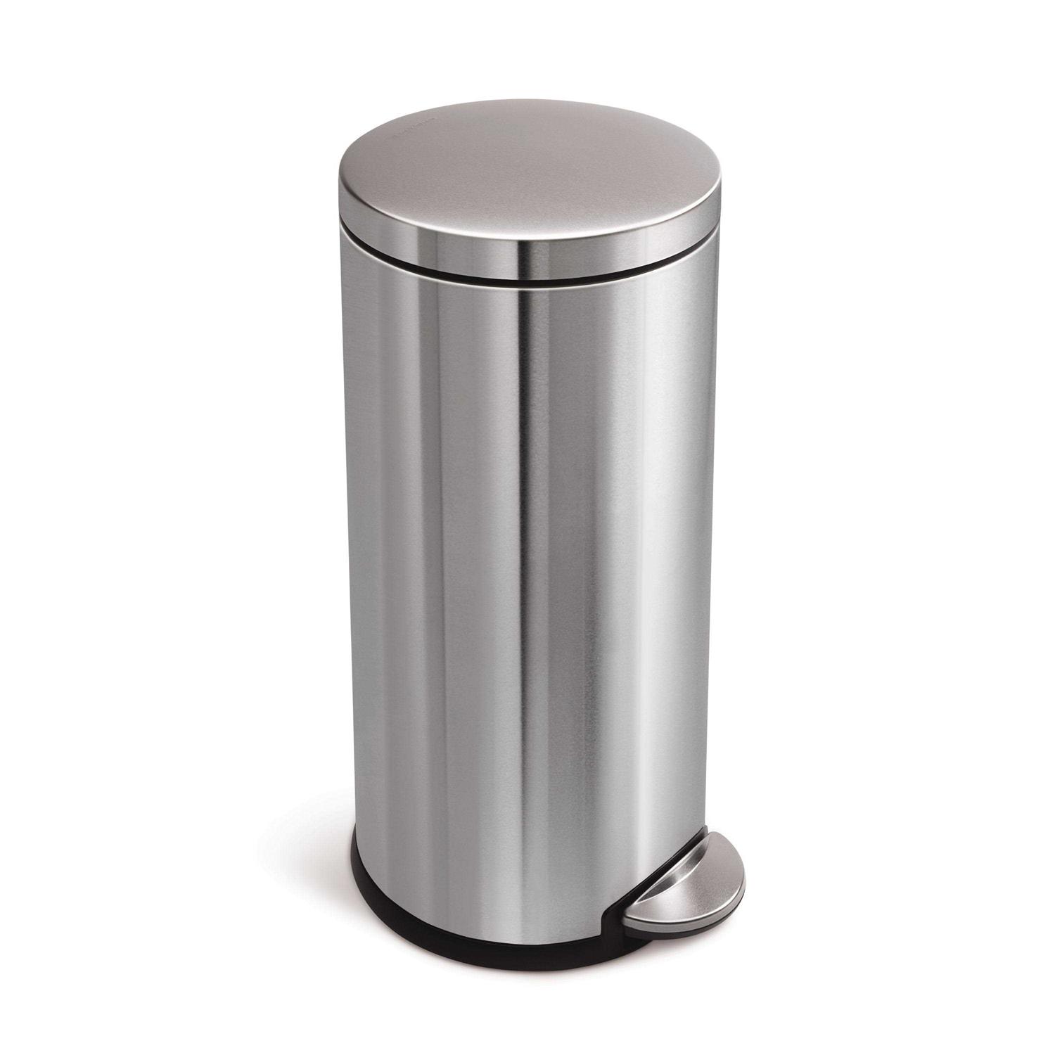 simplehuman 30L / 8 Gallon Round Step Trash Can Brushed Stainless Steel