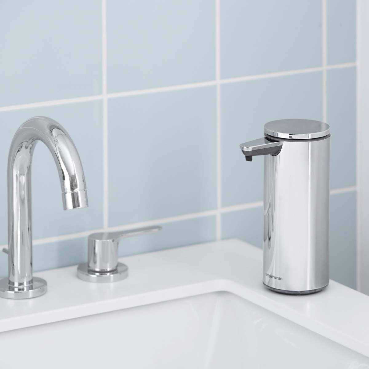 Sleek Touch-Free Sensor Soap Pump Perfect for your kitchen or bathroom our rechargeable sensor soap pump is the most efficient way to wash your hands no germs or smudges left behind. Clog-Proof Tubing Pump It has a clog-proof tubing pump that ensures a precise and consistent flow and the silicone valve prevents messy drips. Variable Soap Volume Dispense To control the amount of foam hand or dish soap desired you can position your hand up close to the sensor for a little soap and farther away for more soap. And a flexible silicone valve snaps shut to make sure there are no messy drops. Easy Opening for Soap Refills A funnel refill opening makes refills fast and easy without any messy spills. Wash Me! This foam sensor soap pump is made from high-grade stainless steel with an IP67 rating which makes it waterproof so you can rinse the pump in the sink and keep it looking like new. Look No Batteries! The foam sensor soap pump is rechargeable – one charge lasts up to 3 months. simplehuman Liquid Gel Soap for Optimum Pump Performance Our sulfate-free formula is gentle on your hands and the optimum consistency for our sensor soap pumps no clogs or drips. It has a simple sensible clean formula that is biodegradable hypoallergenic and contains no parabens or DEAs.