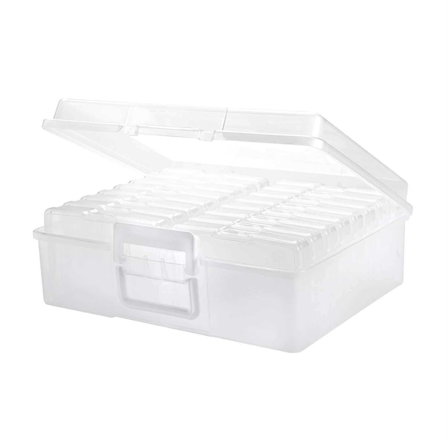 This ultimate storage box includes 16 cases for even more space to organize, protect and store your photos and craft supplies. Perfect for protecting your family memories, this acid-free photo box will hold up to 1,600 of your photos in 16 cases. Each small case will holds up to 100 photos, and they can also be used for small craft items such as embellishments, stamp and stamp pads, stickers and more. Great for sorting photos or organizing your craft projects, the case features a snap-tight buckle to secure contents and a handle that allows for easy portability.
