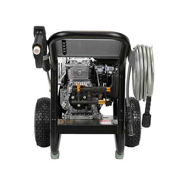 Honda GC190 OHC Engine for reliable start up and power. 187cc, 4-stroke, overhead cam/overhead valve design of engine for high efficiency. Compact combustion chamber, overhead cam design and uniblock construction for reduced fuel consumption. Engine meets EPA and CARB Emission Standards. Maintenance-free, oil bath lubrication system. Precision-ground, highly polished stainless steel pistons for long life. Thermal Relief System protects pump from overheating. Heavy gauge frame components and welded steel construction for durability. 10 in. pneumatic tires for ease of mobility. 1/4 in. x 25 ft. MorFlex high pressure hose is highly flexible, non-marring and kink- and abrasion-resistant. 5 Pro-Style Quick Connect nozzles for versatility in most any cleaning task. Siphon tube for easy detergent application.