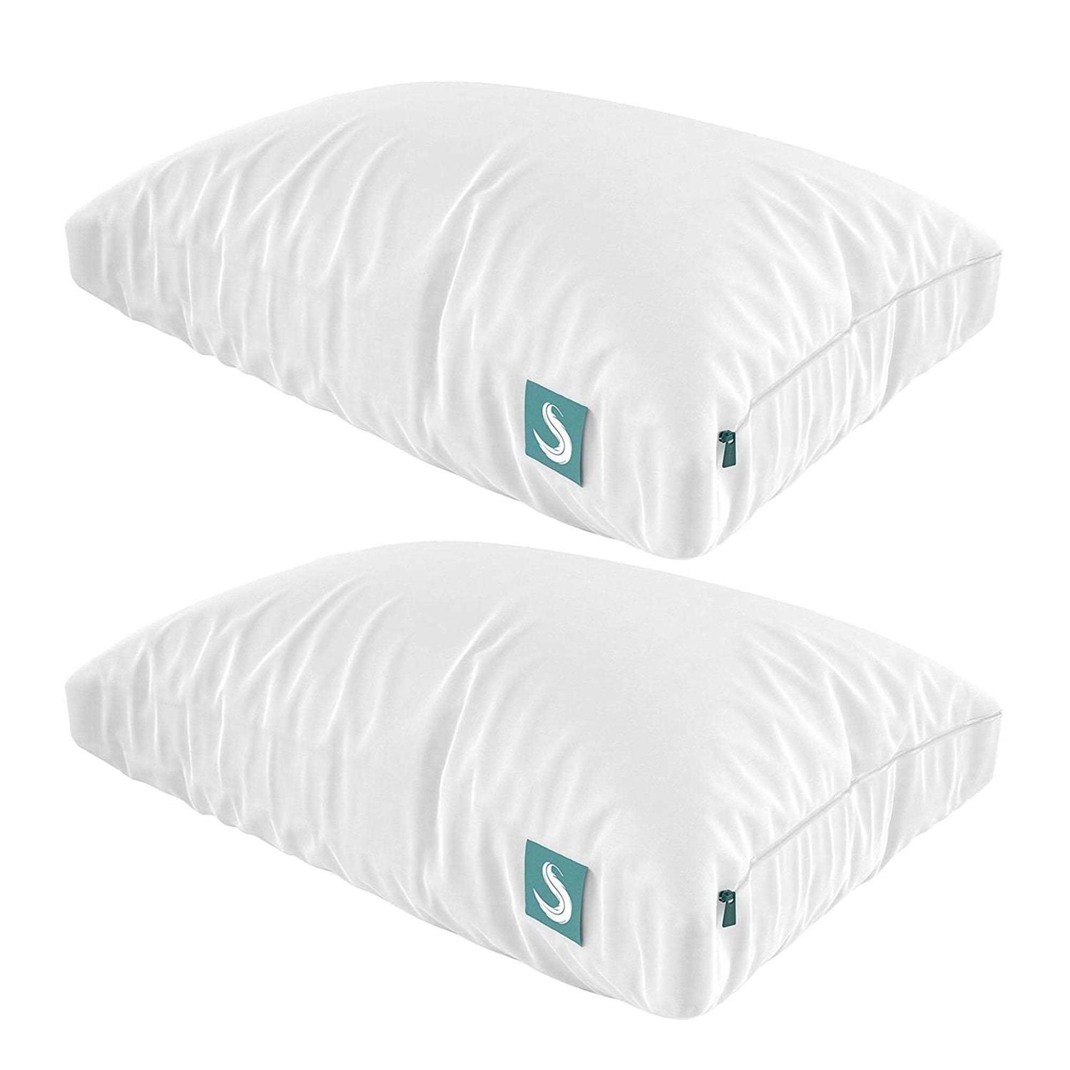 Sleepgram Bed Support Adjustable Hypoallergenic Cool Sleeping Loft Soft Pillow with Removeable Microfiber Cover, Queen size, White (2 Pack)
