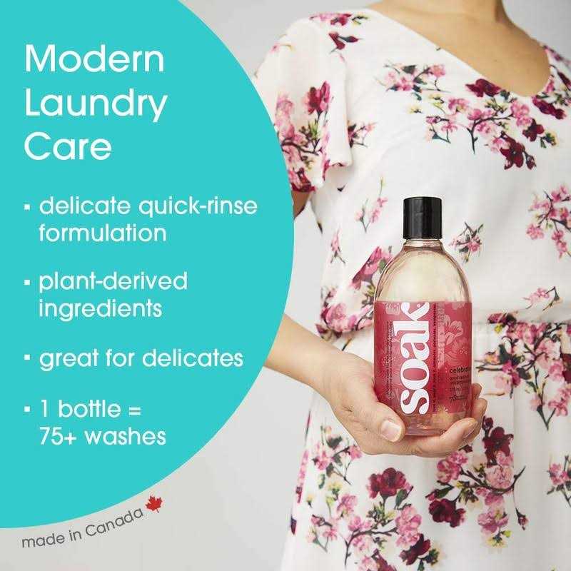 Soak Soakwash is ideal for knitters quilters and fashionistas alike. The gentle no-rinse formulation makes and keeps your clothes and crafts soft and looking their best. This package contains 12 ounces of Soak. Available in a celebration scent. It is an imported.