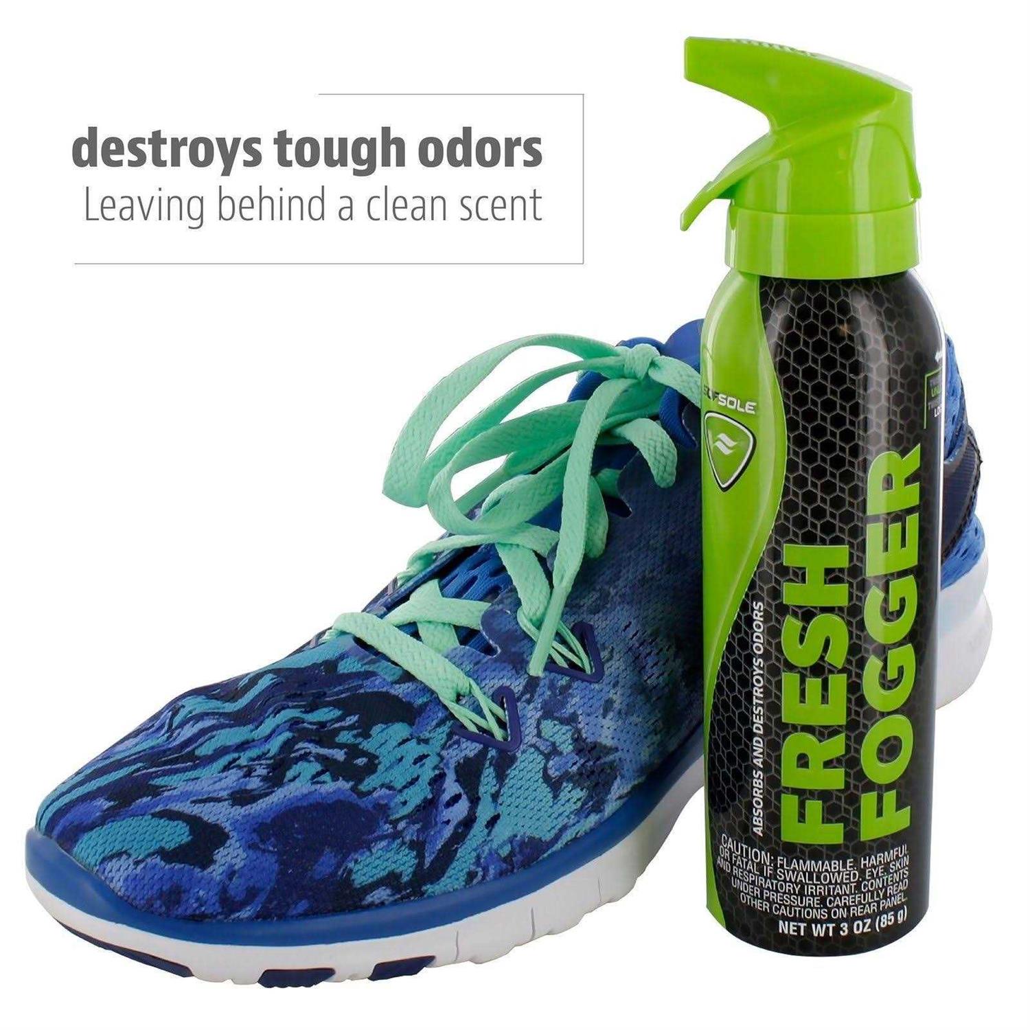 Fast-acting deodorizing spray destroys odors in shoes, gym bags, athletic gear, and lockers