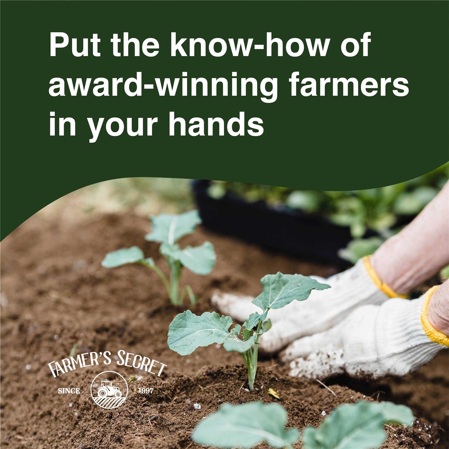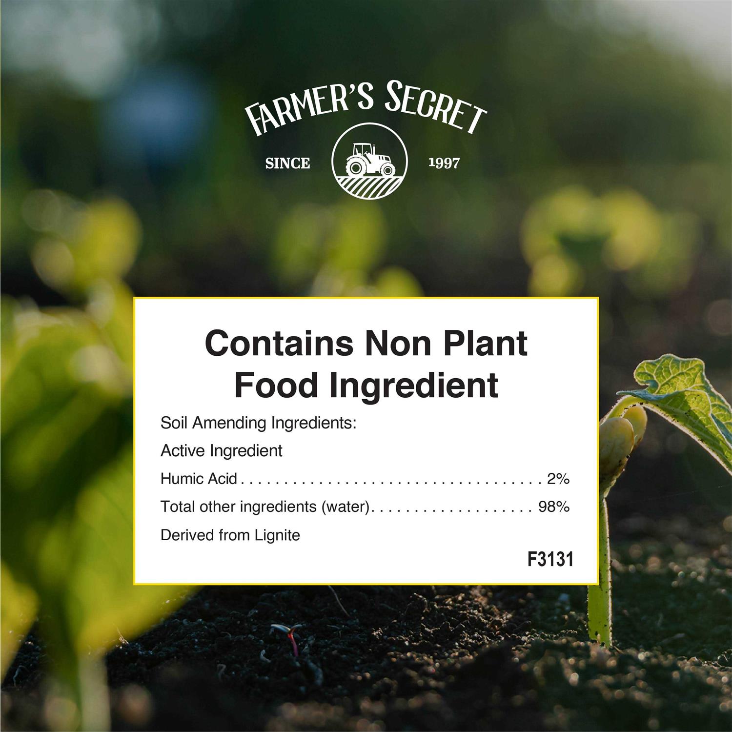 OMRI certified organic product Features: Feed the soil not the plants – stimulate microbial activity in your soil and boost probability of success with all types of plants… like composting but faster For best results apply monthly throughout the growing season, especially in spring and fall (fall application will lay the groundwork for a successful spring!) No synthetic chemicals – main ingredient in this product is activated humics derived from organic sources (OMRI certified organic) Concentrated formula – simply dilute at a ratio of 1 oz to 1 gallon and spray/pour on your soil Farmer’s Secret products are made with pride in Kentucky and puts the know-how of award-winning farmers into your hands. Let us help you help your garden!