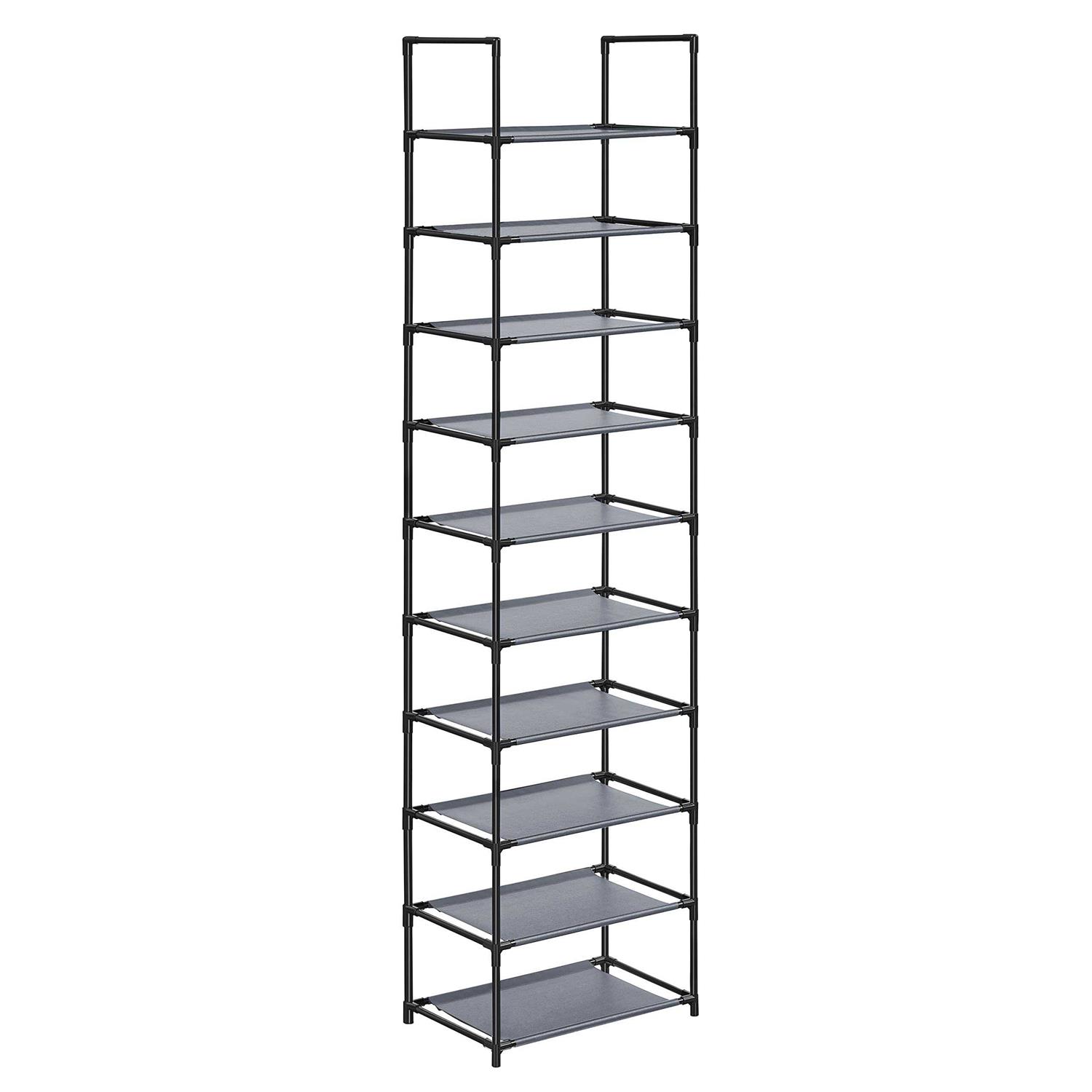 [Worry-Free Assembly] There’s no need to be afraid of the assembly of this shoe rack, as easy-to-read, illustrated instructions and labeled parts are provided for hassle-free assembly. Easier assembly, easier life! [A Stable Home for Your Shoes] Rest assured, this shoe shelf has a long service life! It’s made from strong metal tubes and durable non-woven fabric, giving your shoes stable, reliable support [Slim Figure yet Large Capacity] Sized at 11″D x 17.7″W x 68.1″H, this slim shoe rack with 10 tiers fits in any small spaces in your home, taking up little floor space while providing ample storage space to help you get your shoes organized [As Flexible as You Want] A 10-tier shoe organizer or two 5-tier racks? You can set up the shoe rack either way you like. In addition, you can remove 1 or 2 shelves to fit shoes of varying heights [Versatile as Well] Invite this shoe storage organizer into your entryway, living room, dressing room, bedroom, or anywhere extra storage is in need. Wherever you use the shoe rack, it can always keep your shoes neat and tidy Looking for a solution to store all your family’s shoes? Often annoyed by shoes scattered across your home? This 10-tier shoe shelf comes to your rescue! /br /br Where Highlights of This Shoe Rack Come From: /br – Strong metal tubes and sturdy non-woven fabric make the shoe rack your home’s long-lasting companion. /br – Narrow silhouette takes up little floor space while still offering enough storage space. /br – You can divide the shoe rack into 2 parts to use in different rooms. /br – You can skip some shelves during assembly to fit your boots. /br – Clear instructions and numbered parts make the assembly a breeze. /br – Fits in different spaces, like the entryway, living room, bedroom, or dressing room. /br /br Specifications: /br – Color: Grey /br – Material: Non-Woven Fabric Shelf, Metal Tube, Plastic Connector /br – Product Size: 11″D x 17.7″W x 68.1″H (28 x 45 x 173 cm) /br – Height Between Each Tier: 6.7″ (17 cm) /br – Product Weight: 3.5 lb (1.6 kg) /br – Max. Static Load Capacity of Each Tier: 11 lb (5 kg) /br /br Package Contents: /br – 1 x Shoe Rack /br – 1 x Accessory Kit /br – 2 x Anti-Tip Kit /br – 1 x Instructions /br /br SONGMICS Notes: /br – Children are not allowed to climb on or play with the 10-tier shoe rack for safety. /br – Please secure the shoe storage organizer to the wall with the included anti-tip kit for safety. /br