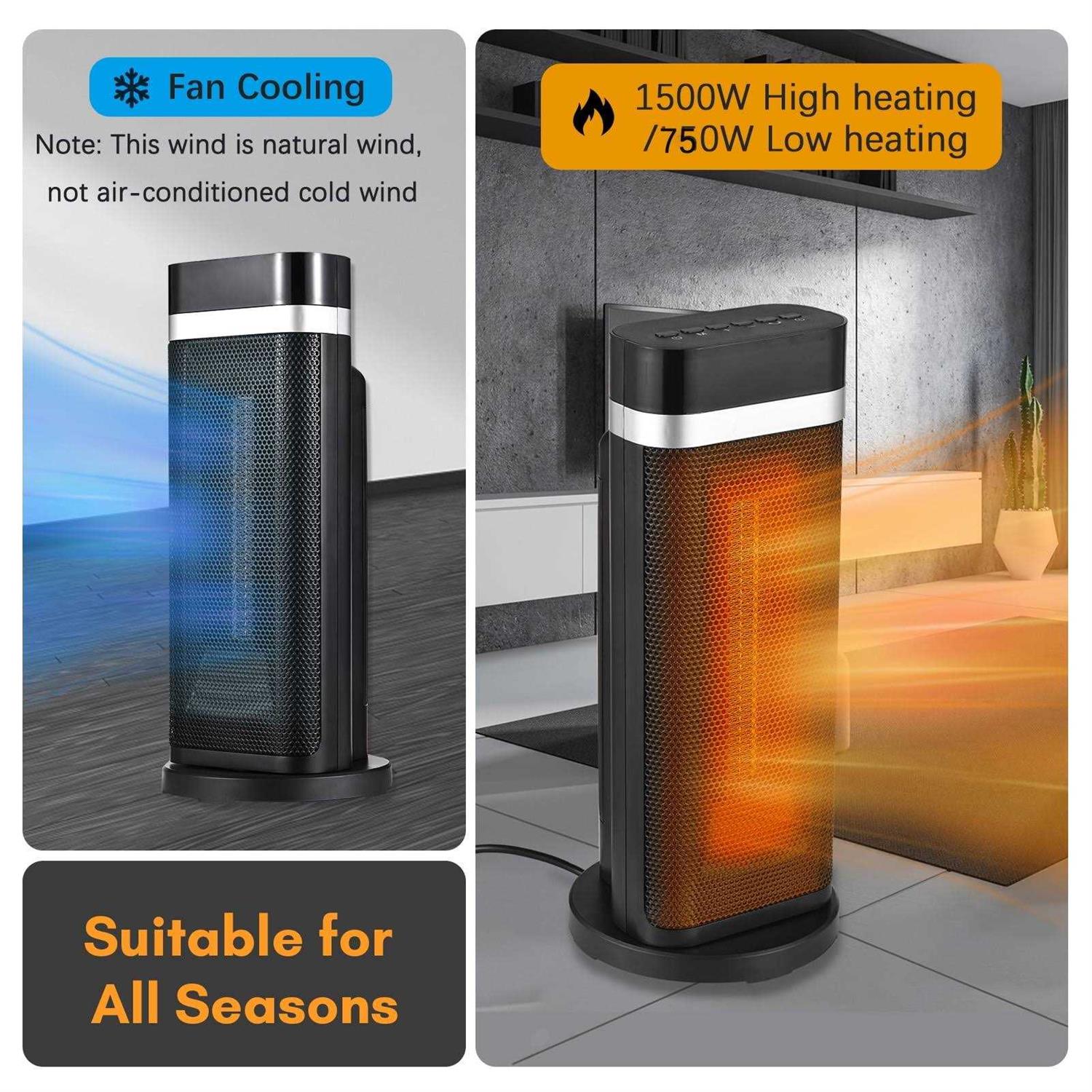 Space Heater Electric Heaters 750w/1500w Ceramic Heater Fan 4 Modes 12h Timer with Safe Overheating and Tip Over Protection Heating