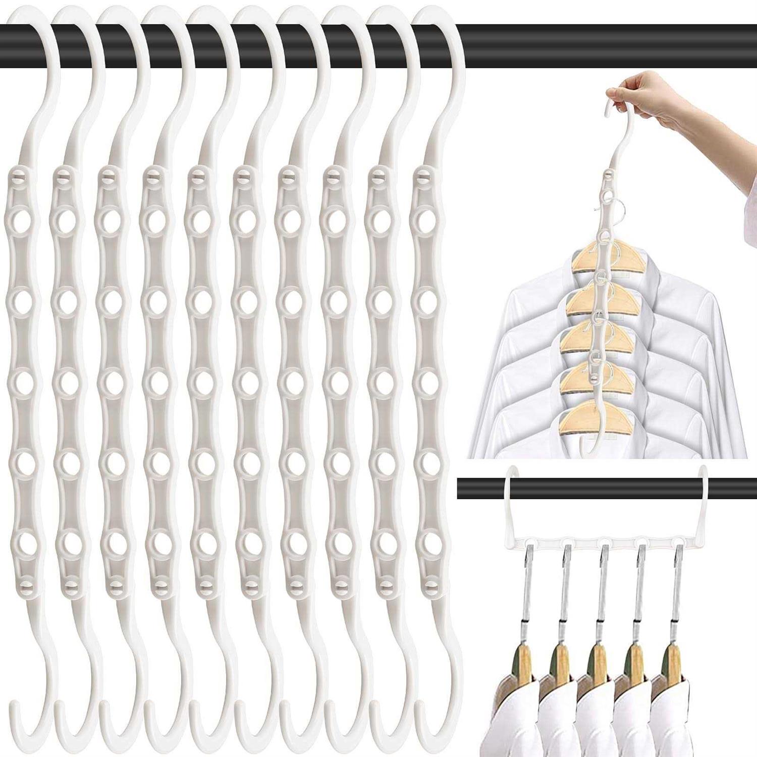Space Saving Hangers, 10PCS Magic Hangers, 5 Holes Sturdy Plastic Hanger Clothes Organizer, Closet Organizers and Storage