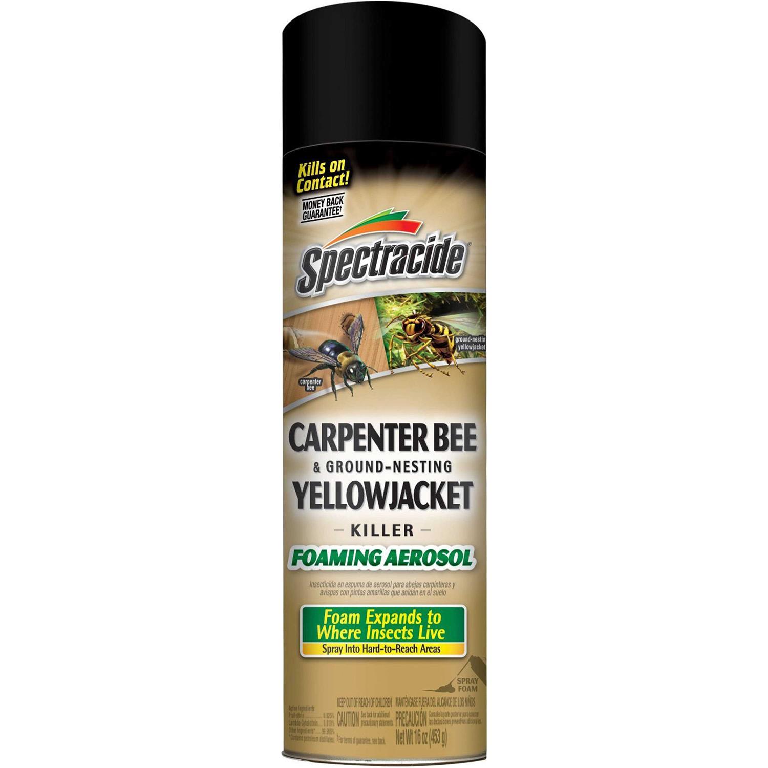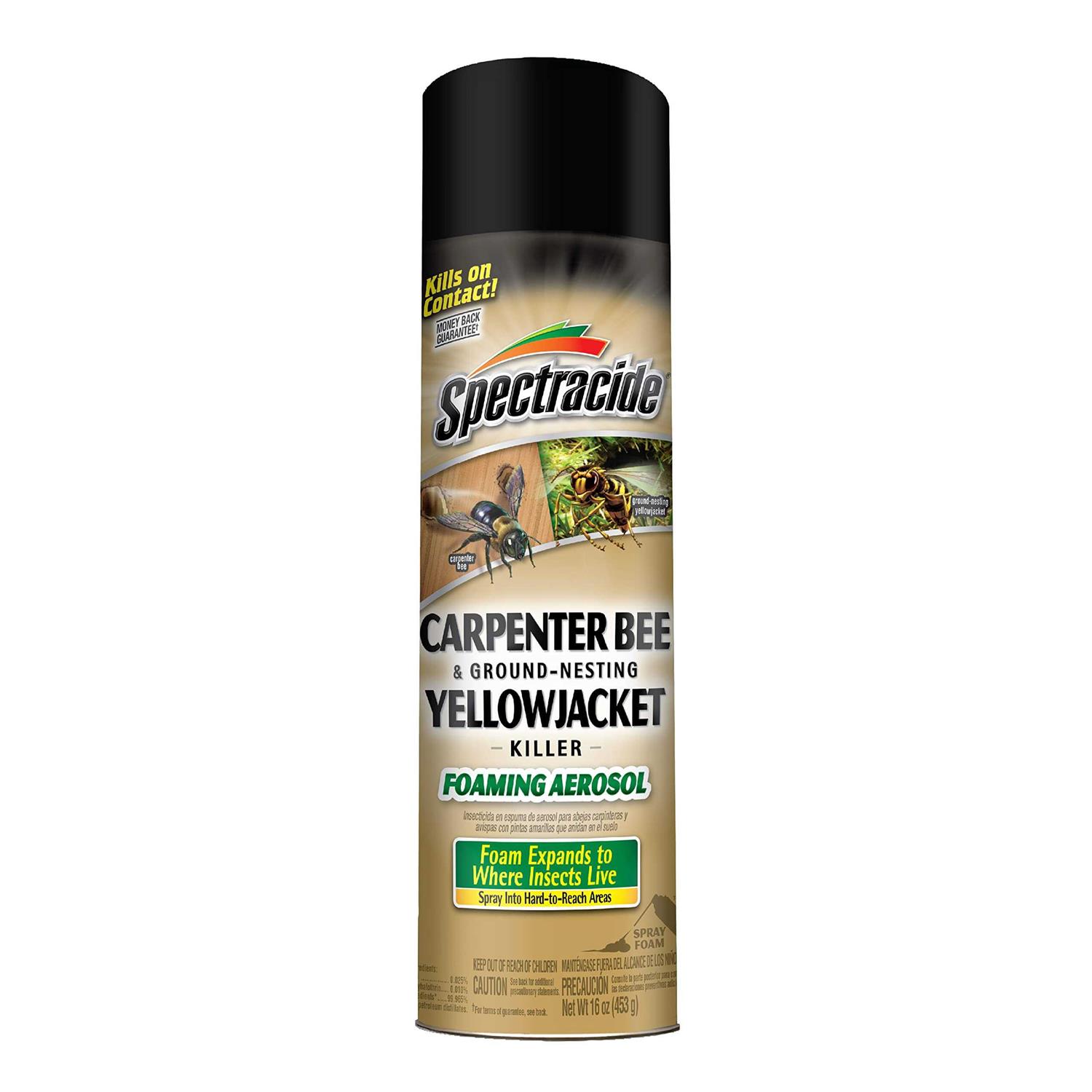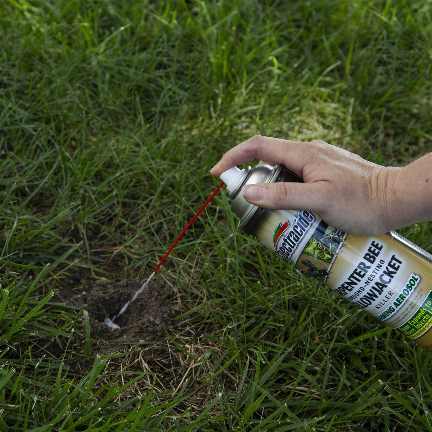 The power is in your hands to keep your landscape in line – unleash it with Spectracide lawn and garden products. Our easy-to-use, fast-acting insect, lawn disease and weed control solutions help you tame lawn and landscape invaders with incredible pest-punishing power. Take command with Spectracide brand. The extension tube helps to direct spray into target treatment areas. For carpenter bees, treat active tunnels where activity has been observed. Leave the entrance hole open for 48 hours after application to allow the bees to contact and distribute the insecticide throughout the nest galleries. Then plug the entrance hole to prevent reinfestation of old nesting tunnels and reduce the chances of wood decay.for Ground-nesting yellowhammers, use the extension tube to spray Spectracide carpenter beer and ground less mess strait jacket foaming aerosol directly into holes in the ground yellow jack jacketed activity has been observed. After 24 hours, cover the hole with soil. For best results, spray early in the morning or late in the evening when yellow yellow jacket activity low and most eyelet yellowness in the nest. Read the entire label before use.