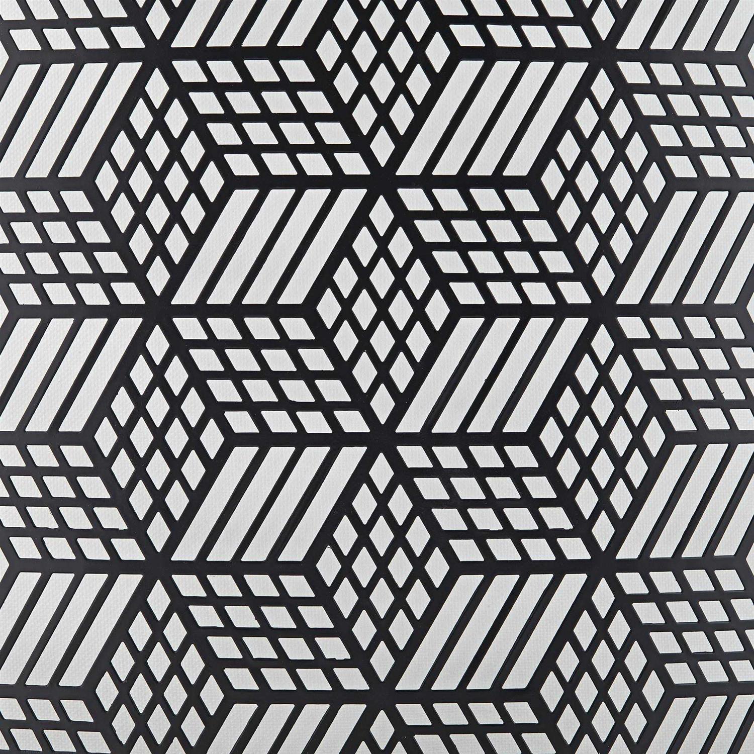 This elegant metal lamp shade combines decorative appeal with a hi-tech laser cut process. The metal shade features a decorative laser cut pattern with a repeating geometric pattern. The look is ideal for modern or transitional style rooms. Shade is a classic drum with a spider fitting.