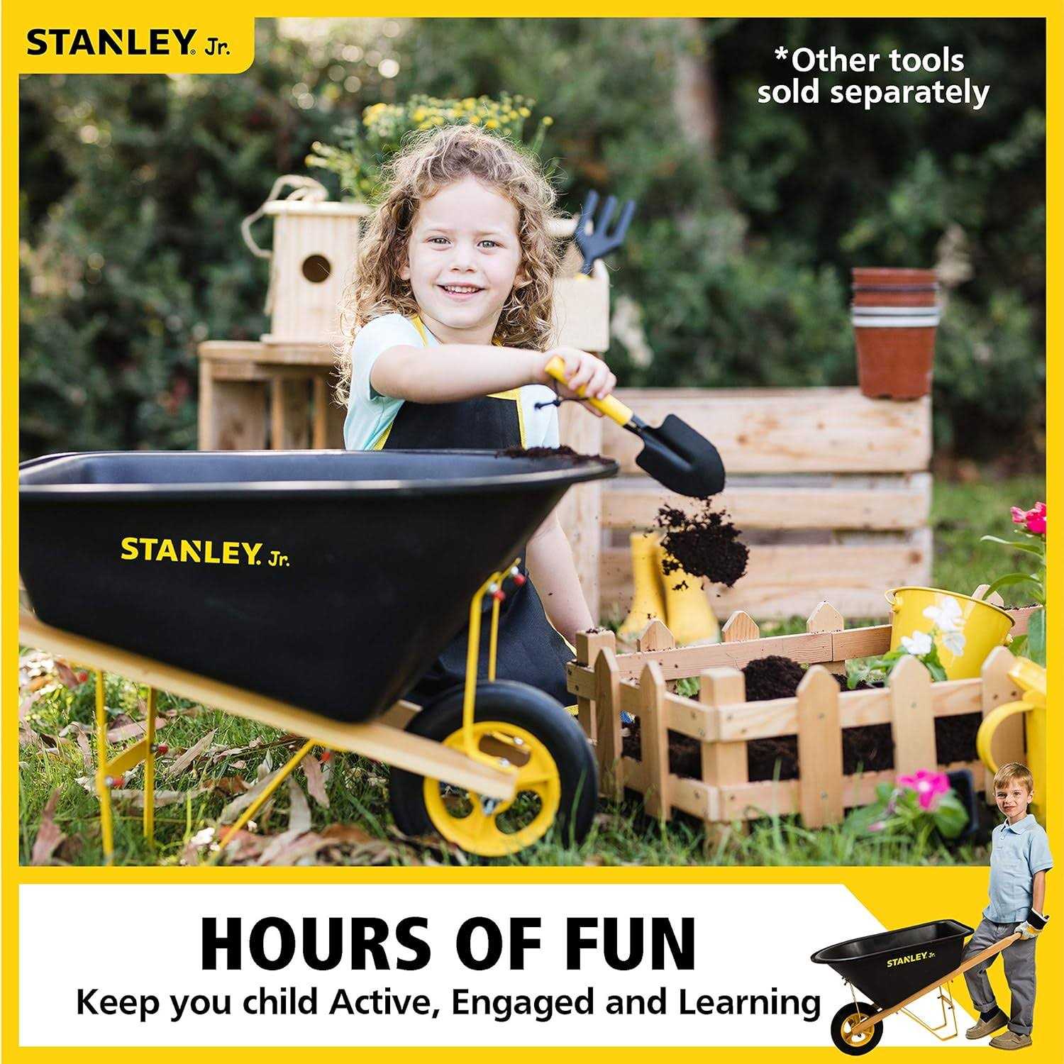 For generations, Stanley Tools have been part of growing up with parents and children developing a special bond while creating, building and working together. Our line of high-quality Stanley garden tools allow families to work on special projects together that they will be proud of and will inspire them to do more. Stanley Jr offers wholesome learning and fun for everyone. This high quality, wheelbarrow is perfect for kids and ergonomically fitted for smaller hands.