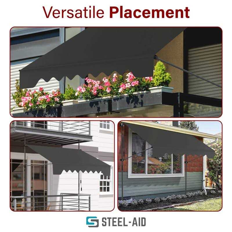 The Perfect Solution: Looking for a way to provide your around-the-house area with more shade on those super sunny days? With our retractable awning, you can enjoy your preferred drink in a shady private oasis. Premium Quality Materials: This sunshade for the patio are specially designed with 100% premium polyester fabric, a material that provides UV and water protection. Beautifully crafted with the finest workmanship, it features a durable and reliable frame that will pass the test of time. Ideal Heat Protector: Our 59” pop-up canopy is 3 m long with a 47″ opening, more than enough to protect you from the heating sun. High adjustable for extra convenience, it can be lifted from 86″ to 122″ by using the hand-crank-operated mechanism with little effort. Easy to Install: One of the best parts of our outdoor shade awning is that it was specially designed to provide comfort and heat relief. User-friendly, the adjustable poles can be attached to virtually any surface and require no drilling for extra convenience. Our pledge: All our products check the highest quality standards, so you can be sure that the sun shade canopy will surpass your expectations. It comes packed with care in a compact box and is super easy to install, saving you time and energy. STEELAID easy to use, manual retractable awning