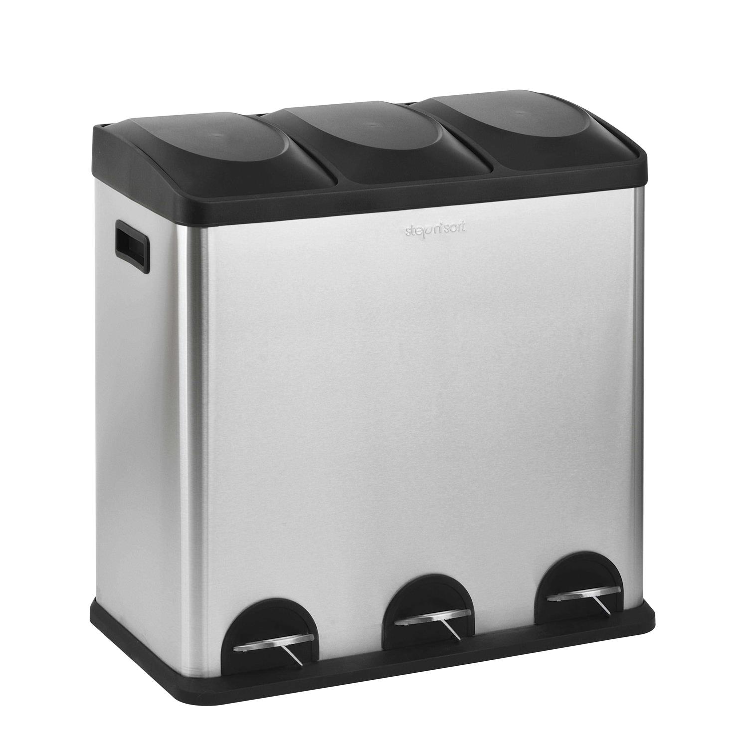 Designed to handle all of your waste recycling and storage needs the Step N’ Sort 3 Compartment Stainless Steel Trash and Recycling Bin is the perfect organizational solution. Suitable for the home or office this bin boasts a heavy-duty stainless steel frame for durability. The easy hands-free step pedals allow you to sort your items into removable inner bins. Use this bin to sort recyclables organic waste garbage laundry detergent or even dog food. Color Silver metallic.