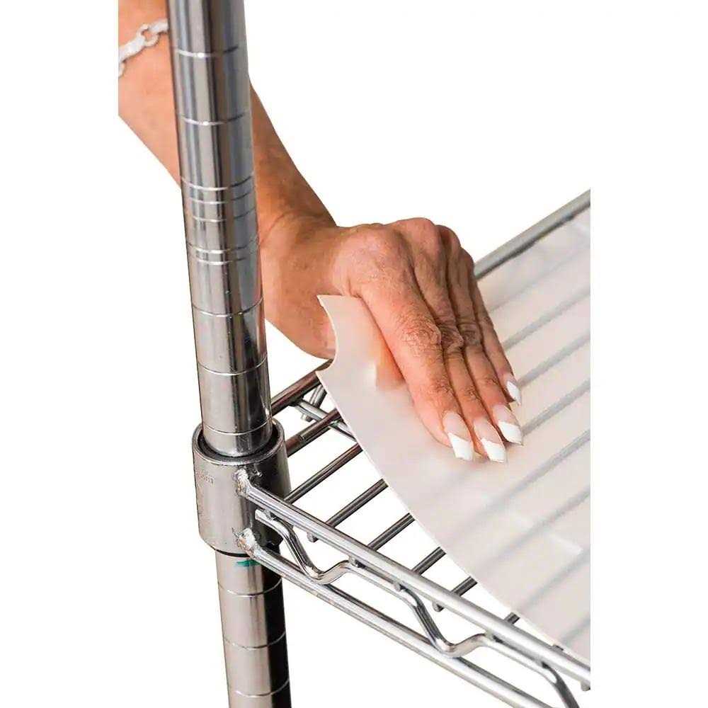 Sterling shelf liners sets the standard in the industry. Our wire shelf liner is crafted to provide unparalleled quality, longevity, function and beauty. This Non-Skid shelf liner instantly gives your wire shelf all the benefits of a flat surface. The Wire shelf liner prevents items, including high heels and canned goods from tipping over or falling through gaps in wire closet shelving. Our liners are waterproof, easily wipeable, and have been custom tailored to fit perfectly on standard wire shelves. Wire Shelf liners can be trimmed to necessary length with standard scissors. For extra long wire shelving, multiple liners can be used.