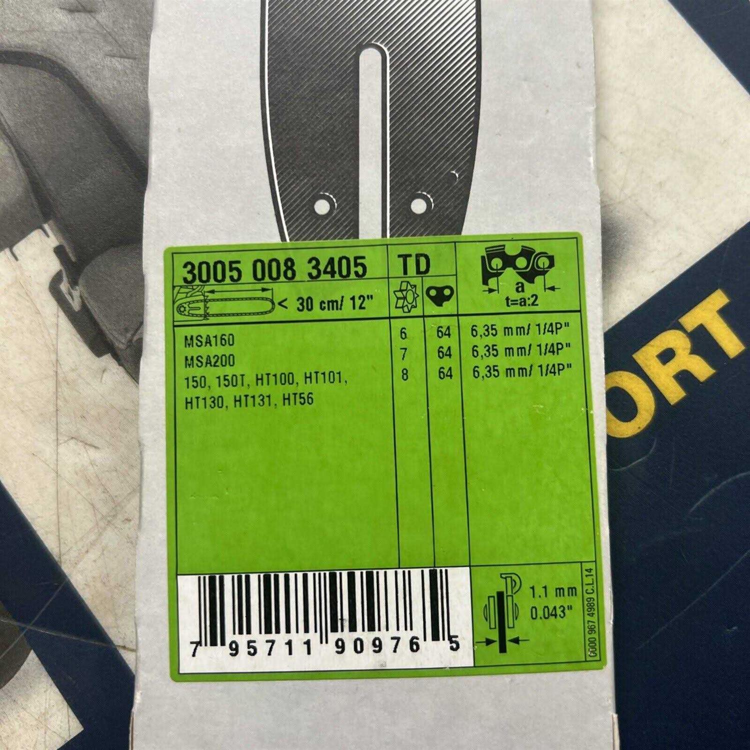 The Stihl Rollomatic E Mini is a general-grade laminated guide bar made of high-grade steel. Three metal plates are electrically welded together to provide great stability. Designed for use with 61PMM3 or 71PM3 saw chain, it increases cutting efficiency over PM1 chain by 13%. A sprocket is incorporated in the nose of the bar that carries the saw chain from the top to the bottom of the bar. This not only reduces wear, but also enables the bar nose to be made considerably narrower. This type of construction is an advantage where extensive use is made of the bar nose (i. e. limbing and boring). All Stihl Rollomatic bars designed with a narrow nose help reduce kickback tendencies. Applications: This bar is primarily intended for use on pole pruners and arborist applications. Stihl recommends using low-kickback, green-labeled chain and green-labeled reduced-kickback bars on all powerheads.