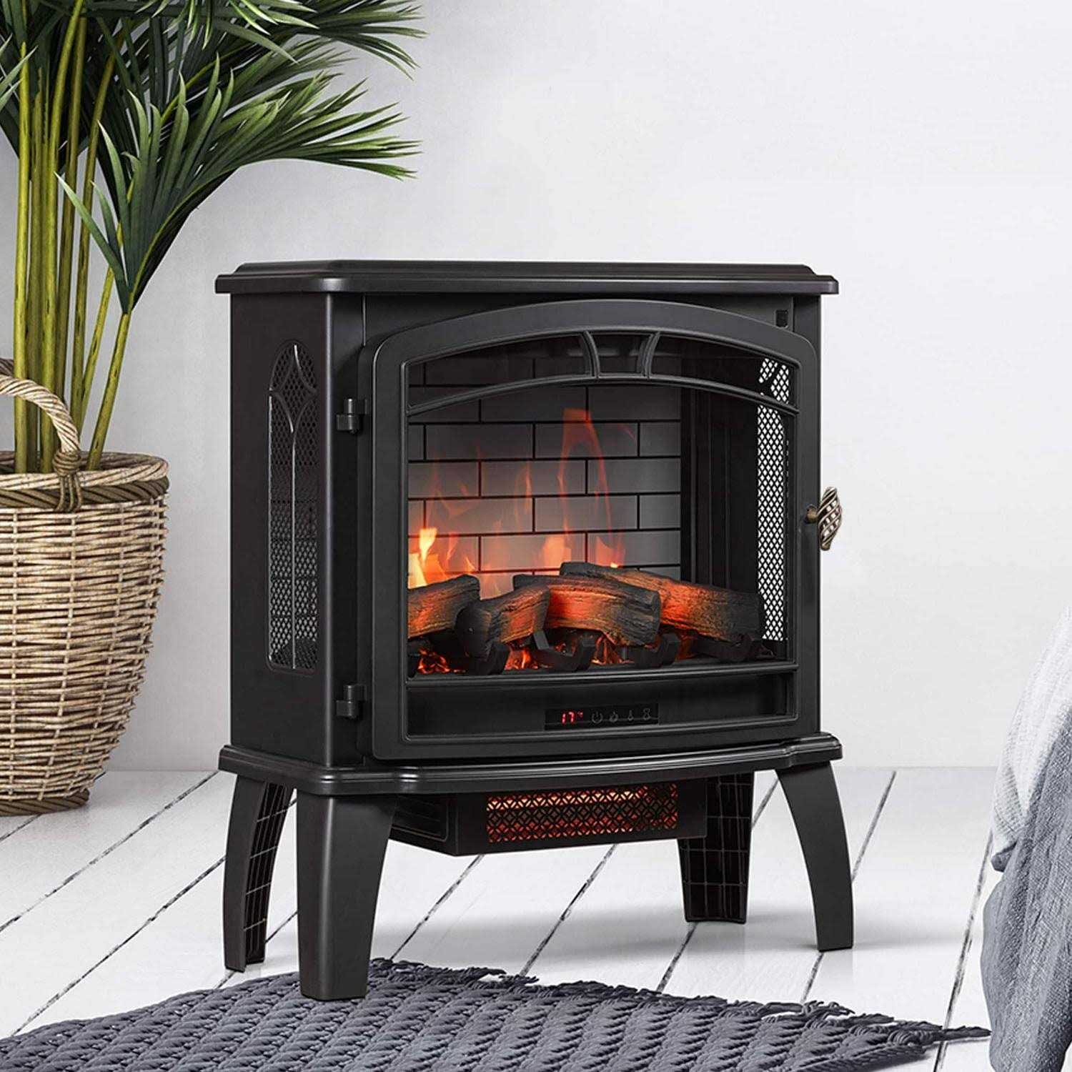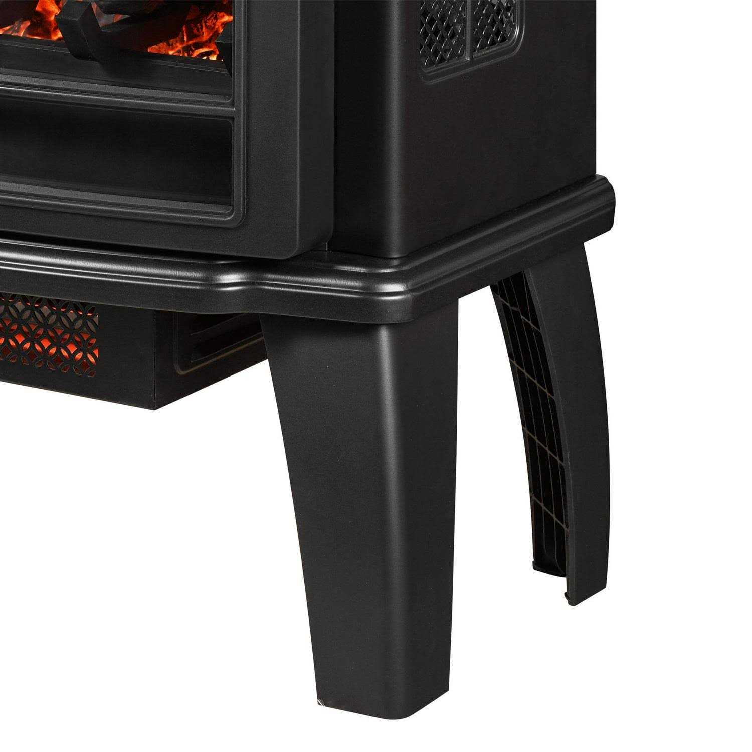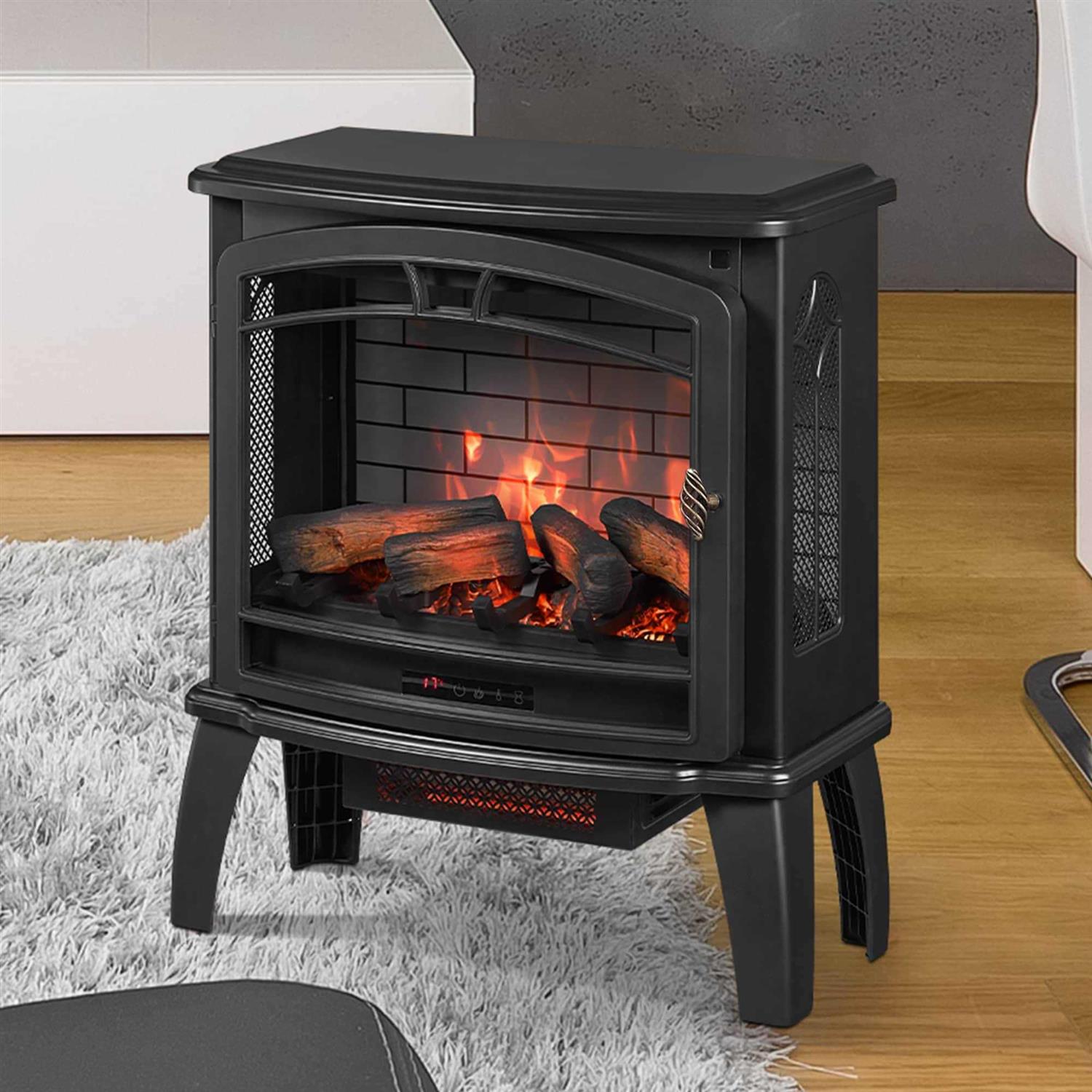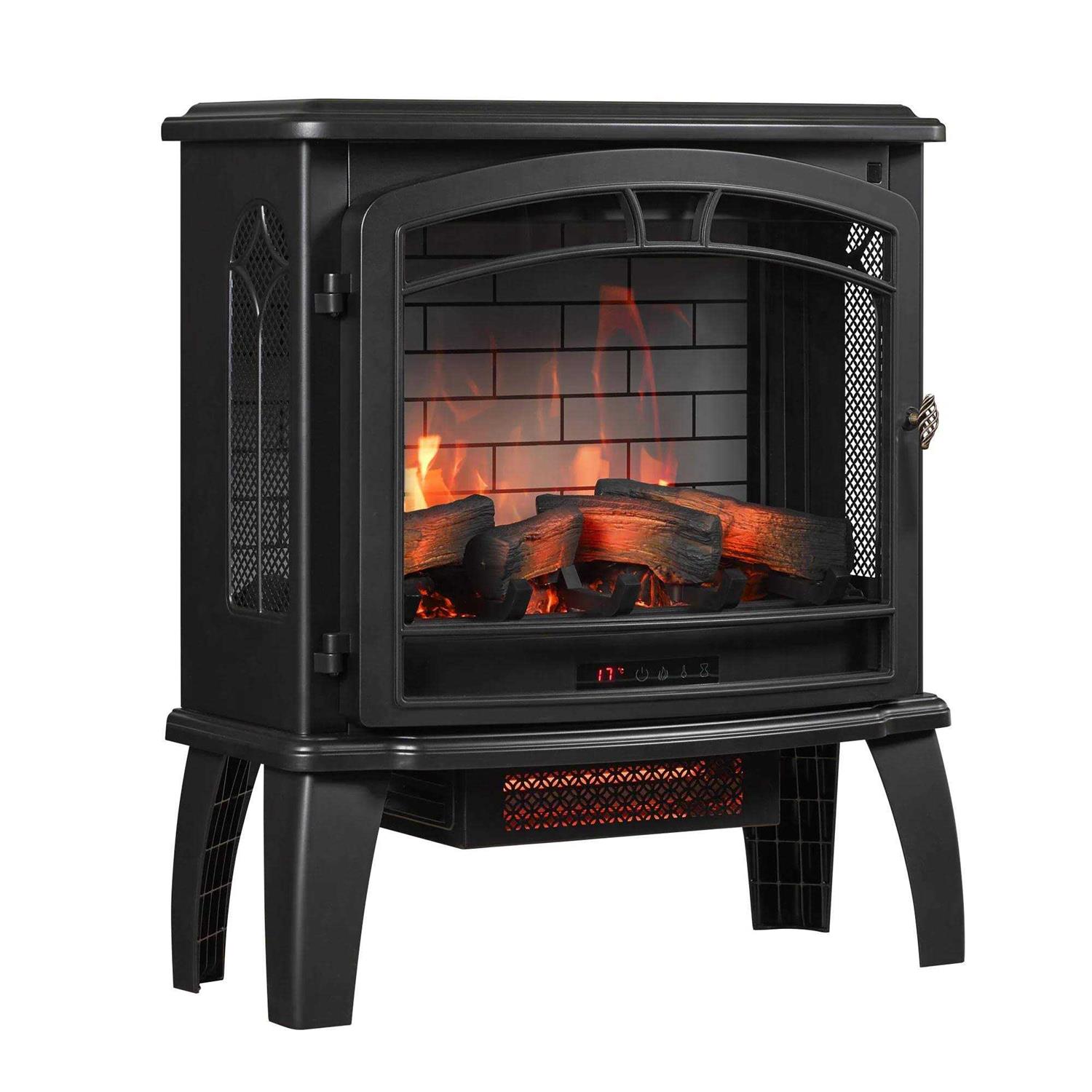 This 5, 200 BTU infrared quartz electric stove heater provides supplemental zone heating for up to 1, 000 square feet, all with charming style. Patent pending 3D Flame effect technology offers the beauty of brilliant flames layered on and behind the logs for truly realistic fire experience that can also be customized with five adjustable brightness settings. Flame effects can be used with or without heat for year-round ambiance. In addition to an operable glass-front door, wire-mesh side panels allow you to enjoy even more of the brilliant fire. The infrared quartz heat warms your room quickly without reducing the natural humidity in the air, creating comfortable heat that won’t dry out the room’s air. A digital thermostat read-out makes it easy to see and control the temperature of your space. The included remote control makes it effortless to control the heat from your favorite spot.