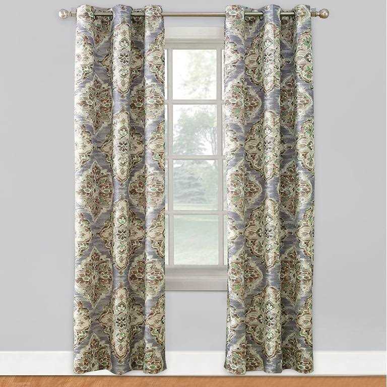 - Silver metal grommet top fits a standard curtain rod for easy hanging