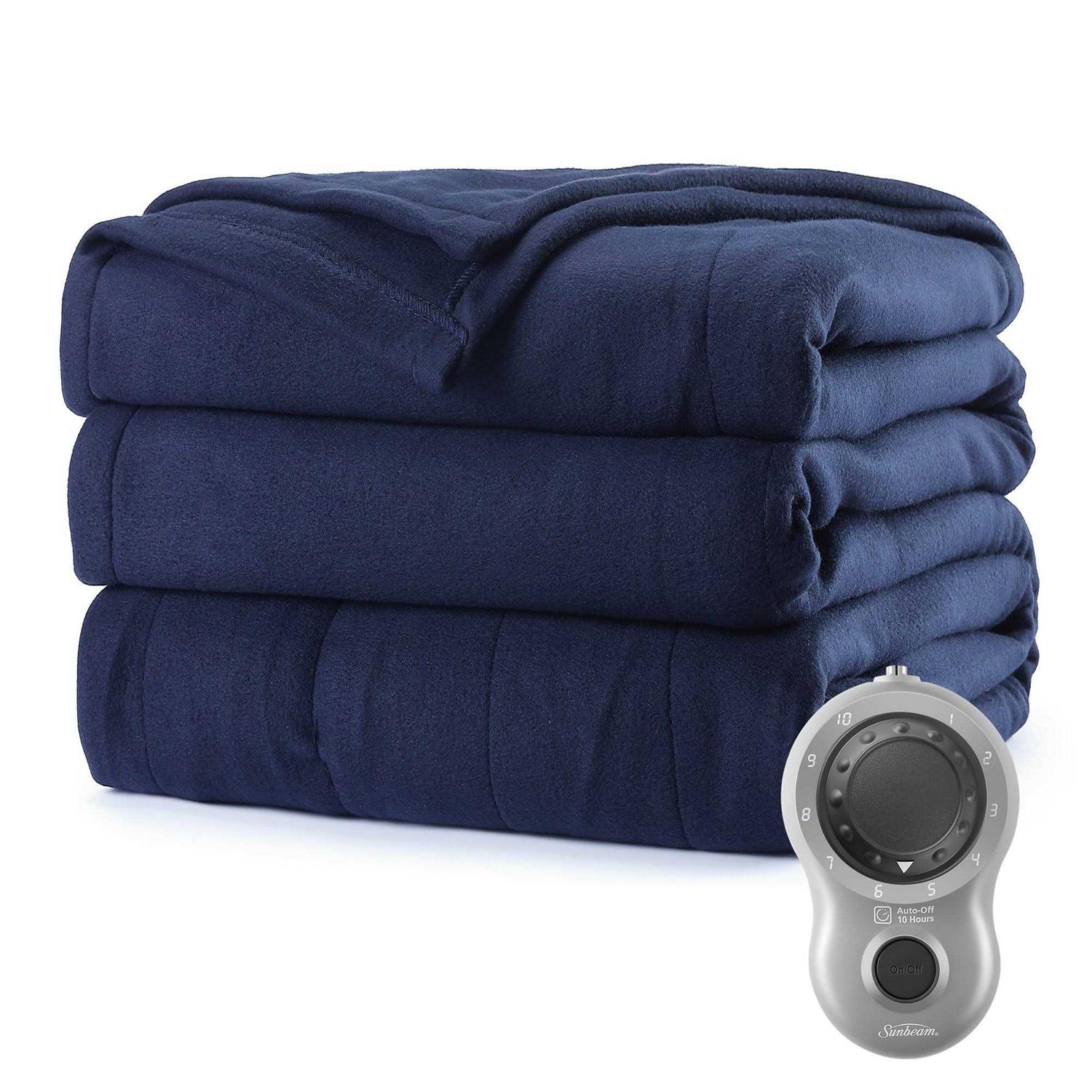 Sleep better with the Sunbeam Fleece Heated Full Size Blanket and beat those winter blues. Indulge yourself with its comfy and cozy fleece material, wrapping you in luxurious warmth all night long. Easy to use detachable controller with 10 heat settings to choose from and a 10-hour auto-shut off feature for peace of mind. This stylish blanket comes in elegant color options that are sure to compliment any decor. Remove the controller and place the blanket into the washer and dryer for easy maintenance.