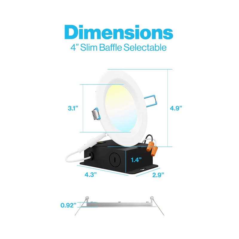 - Top Rated 4 Inch Selectable Color (2700K/3000K/4000K/5000K/6000K) Slim LED Downlight with Junction Box