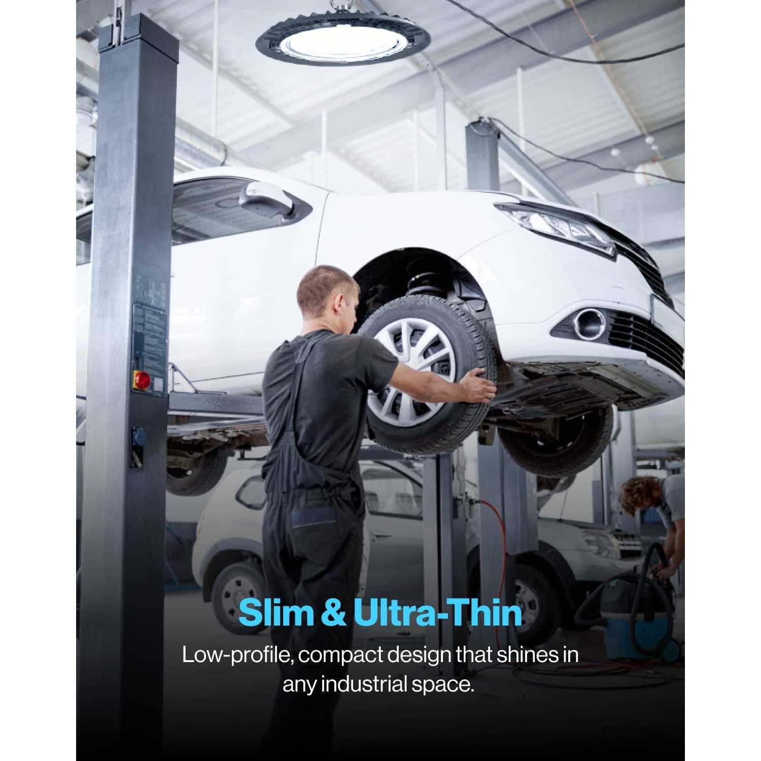 Top Rated LED Plug & Play UFO High Bay INSTANT ON – Provides instantly bright light with no buzzing or flickering for maximum eye comfort. Ideal applications include warehouses, exhibit halls, gymnasiums, manufacturing, highway toll stations, and gas stations. COMMERCIAL GRADE – IP65 waterproof and shatterproof housing for reliable bright light in any weather. Designed for optimal heat dissipation to withstand extreme temperatures. Replaces outdated fixtures to improve energy efficiency and reduce maintenance. Lightweight aluminum alloy housing designed for indoor or outdoor use. Comes with lifting ring and 70.9” long power cord for quick and easy installation. No UV or IR light. 110° beam angle for wide area coverage. SUNCO BENEFITS – 5 years of protection! Say hello to a brighter future with Sunco+ benefits – industry-leading coverage, support, and peace of mind.