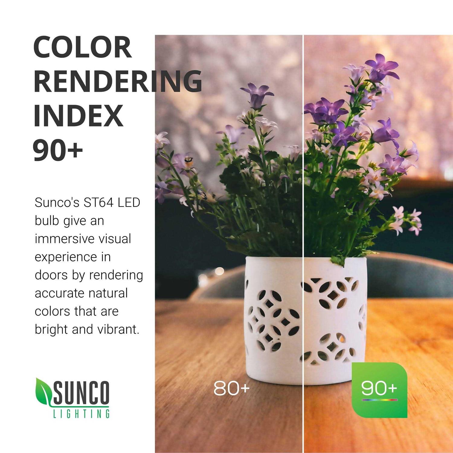 Top Rated Dimmable ST64 LED Bulb E26 Base DIMMABLE – Seamless dimming capabilities (10%-100%) that fit any mood or decor. Our ST64 LED lights combine charming vintage design with the latest in LED technology. Ideal applications include restaurants, hotels, lamps, and exposed fixtures/pendants. WATERPROOF – Our LED ST64 bulbs are weatherproof and can stand up to the elements. Durable dust-tight construction that provides you reliable bright light in any weather. Sunco’s LEDs are the sustainable choice offering a longer lifetime than traditional bulbs (halogen, incandescent, fluorescent) and reduced relamping costs.