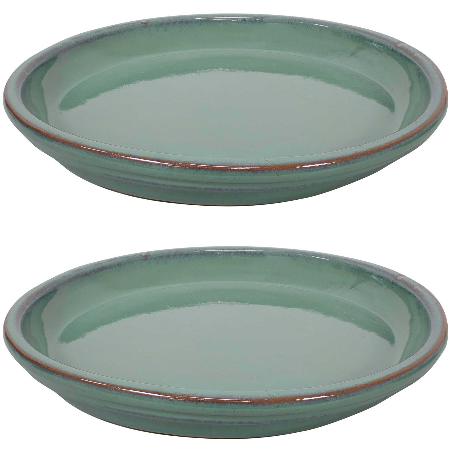 Sunnydaze Set of 2 Glazed Ceramic Planter Saucers – Seafoam – 12″