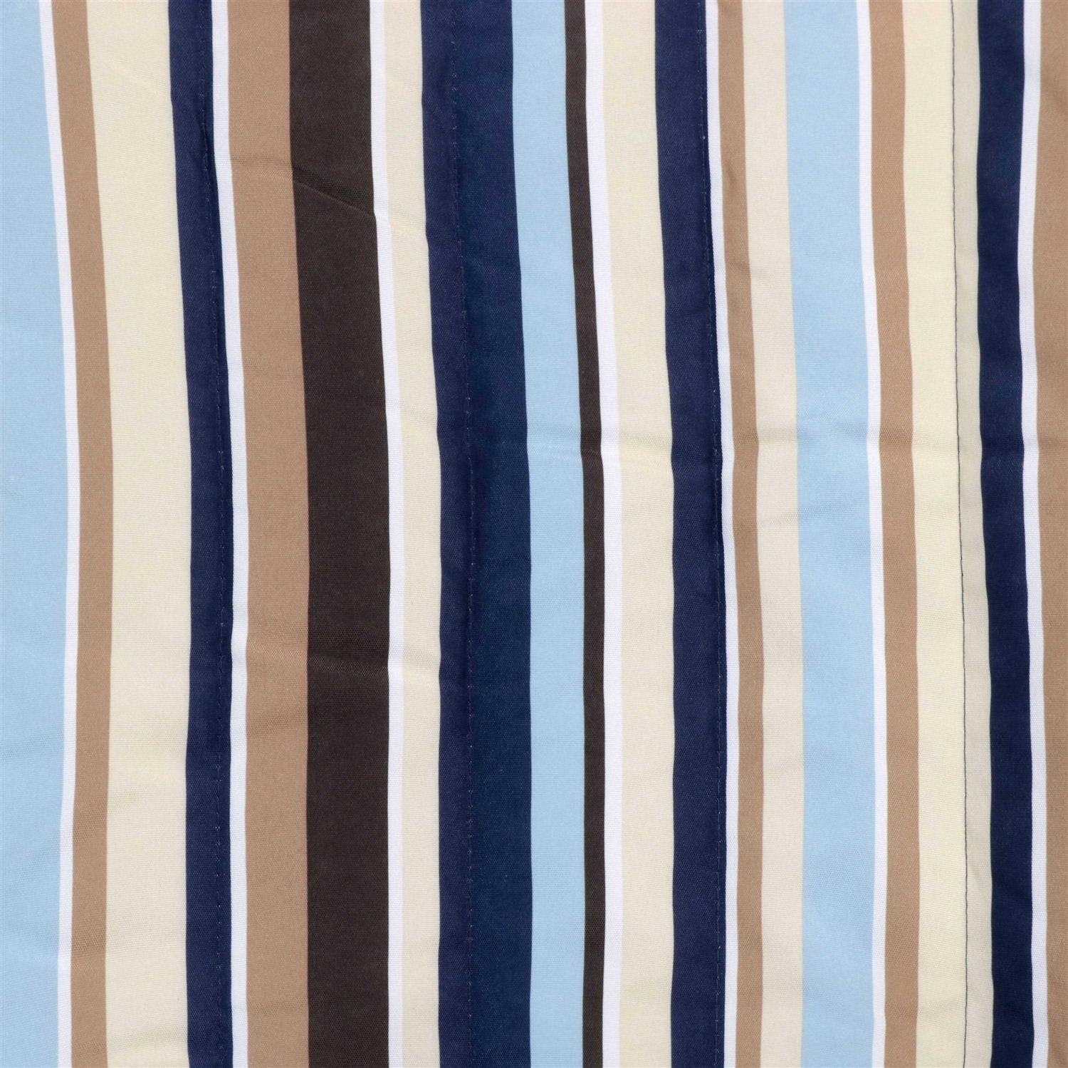 Bring comfort and style to any yard, patio, deck, front porch, campsite, or any other outdoor space! This quilted, fabric hammock with an included pillow is the perfect relaxation spot your space is missing. This hammock features an ocean isle-inspired aesthetic with navy blue, tan, ivory, baby blue, and brown-colored stripes throughout. It also includes a detachable pillow (that attaches with buttons) so you can rest your head easily while reading a great book or napping. Simply hang between trees, posts, or a 12′ or 15′ hammock stand (please note, a hammock stand is not included and is sold separately). This 2-person, striped hammock is a great relaxation spot in your yard while eating snacks, at the campsite when on the go, or lazily at any park! In addition to the tasteful color combinations, it also features a polyester cover and polyurethane foam filling. Polyester material stays soft to the touch while remaining durable against the outdoor elements.