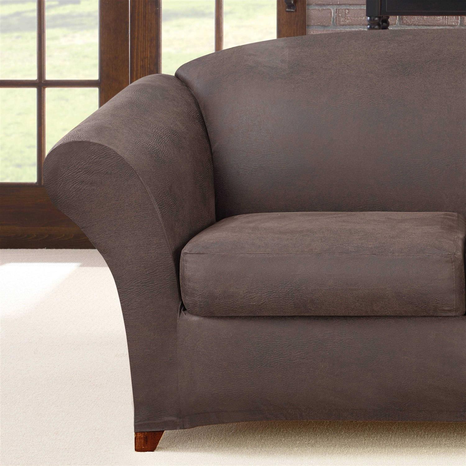 Sure Fit Upscale Smart. The luxury and look of leather in an affordable, washable slipcover. This full grain pattern will impress even the most discriminating eye, with individual seat cushion construction and premium detailed straddle-stitched seams. Offered in Pebbled Grey.