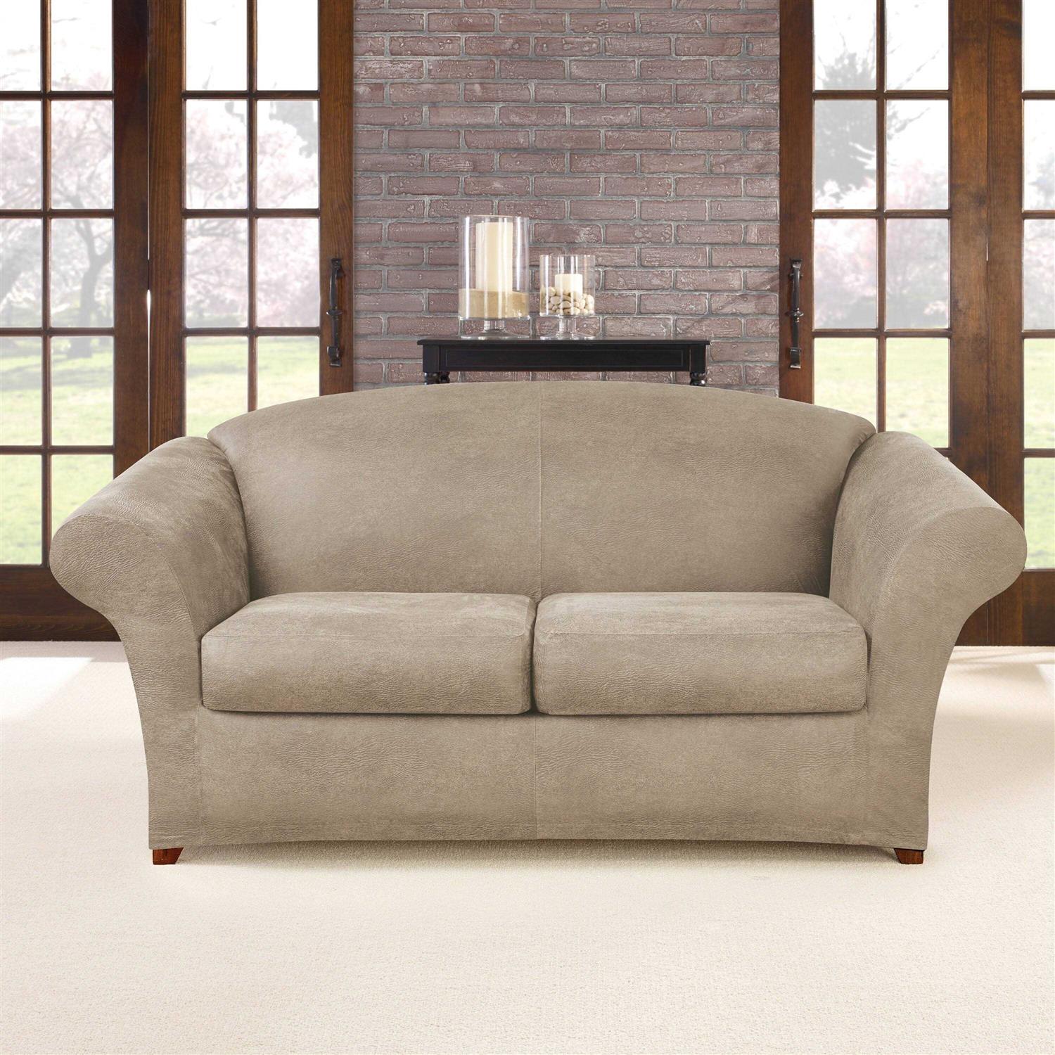 Sure Fit Ultimate Heavyweight Stretch Leather Slipcover (Pebbled Ivory, 2-Seat Box Cushion Loveseat)