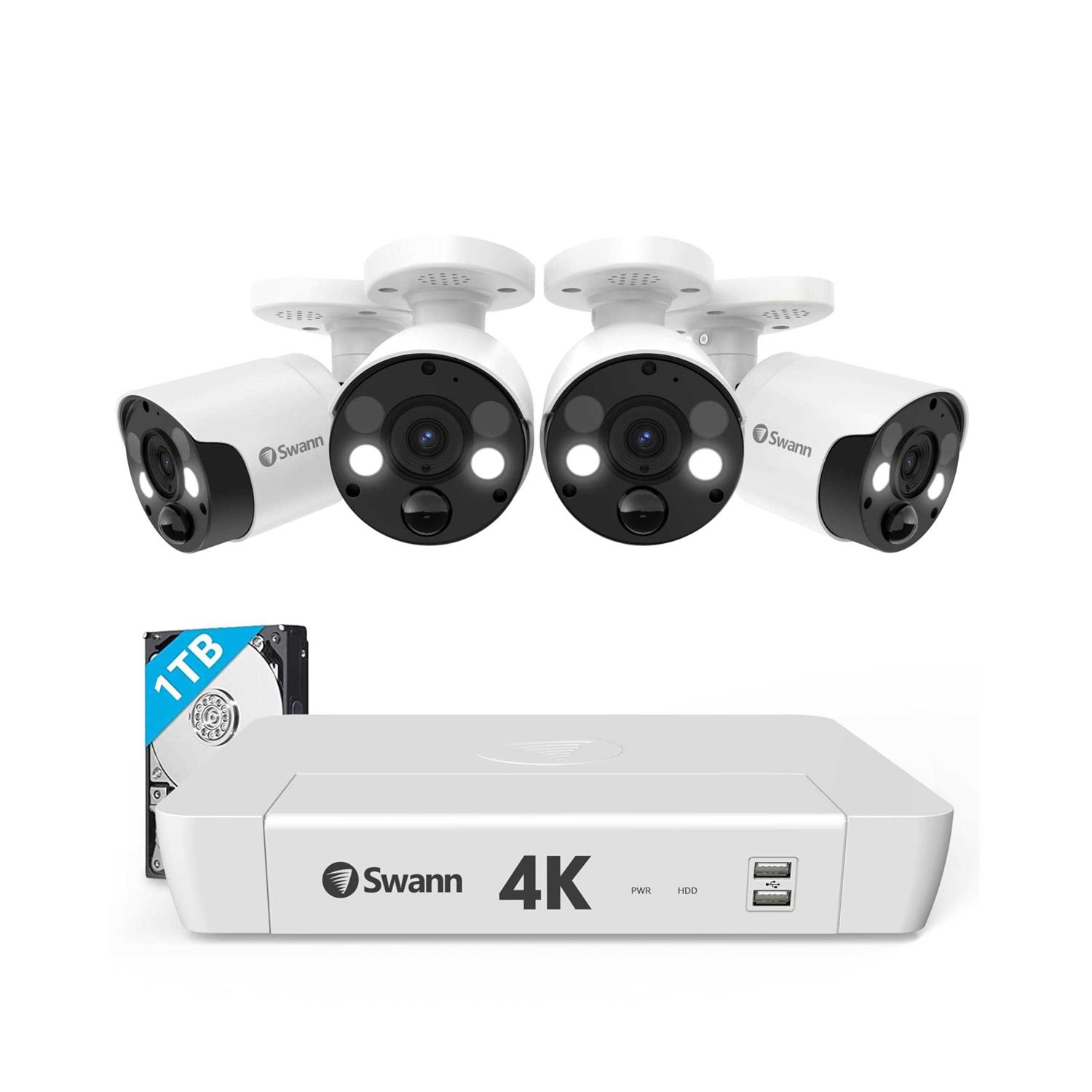 Swann 8-Channel 4K 1TB NVR Wired Security System with 4 Bullet Cameras and Color Night Vision