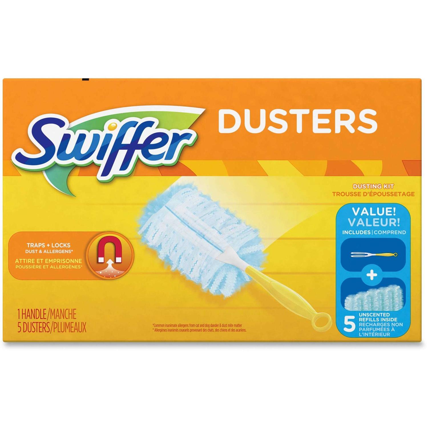 Swiffer Dusters pick up dust and lock it away with thousands of flexible fluffy fibers. Lightly coated with Dust Lock Adhesive, these fibers change shape to reach into nooks and crannies, trapping up to 2x more dust than a dry dust cloth for a thorough clean. The ergonomic handle gives your hand a good, comfortable grip.