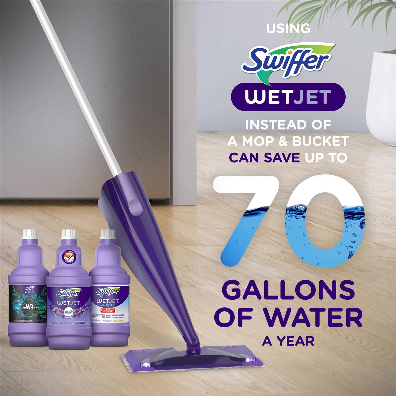Swiffer WetJet Refill Pack, Lavender (32 Pads + 2 Bottles) Get your floors spic and span and keep them looking great with Swiffer WetJet Mopping Refill Pack. With this cleaning bulk pack, all you need is a Swiffer mop and you are ready to easily transform the look of your floors from dingy and dull to bright and shiny in mere minutes. Swiffer Heavy Duty Wet Sweeping Cloths Trap + Lock 50% more dirt allowing you to quickly and easily clean all your hard floor surfaces.