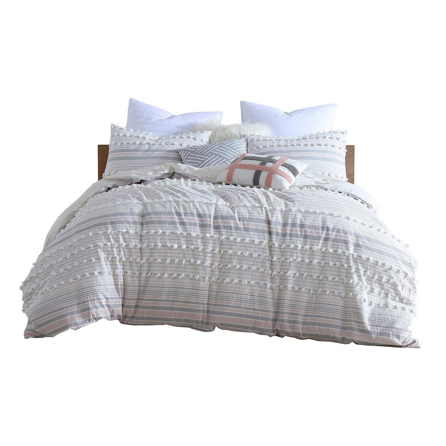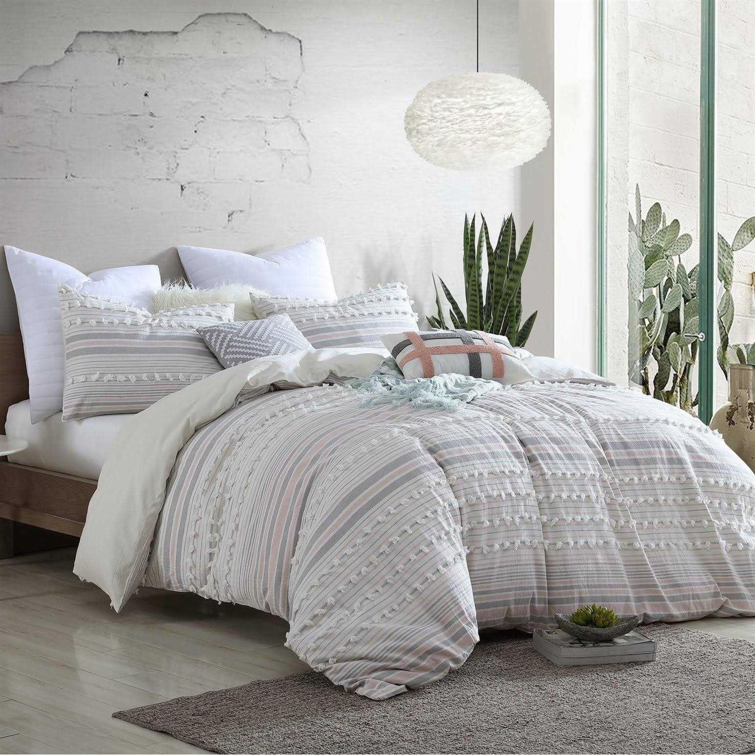 Designed with clip dot accents on a stripe background, this set will bring contemporary and chic aesthetic to your bedroom.
