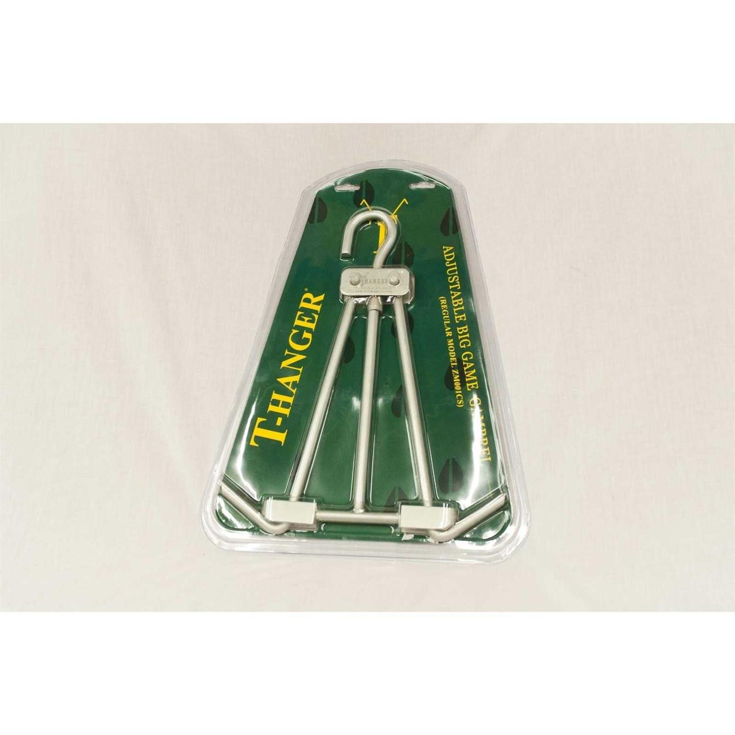 The patent-pending guide-rail system utilizes the weight of the animal to force the hind legs open, making field dressing easier. Automatically adjusts to hang everything from a small hog to an elk. Self-leveling feature keeps game from swinging when weight is transferred to just one side. Made from welded steel with no fastener, joints or other weak points. A five-year zinc coating keeps it rust-free.