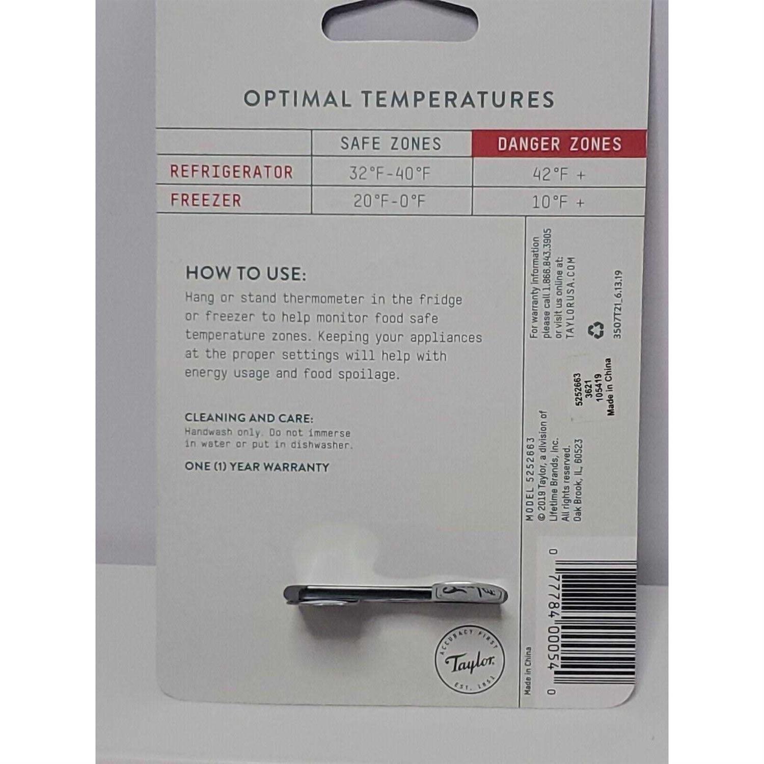 Is produce going bad quickly or the cold cuts in the deli drawer freezing? Keeping track of air temperatures inside refrigerators and freezers can help ensure safer food storage. This 2 inch dial thermometer will monitor appliances for proper functioning and show when temperatures fluctuate outside of safe storage zones as noted in the product artwork. Place the thermometer on the shelf, in a drawer or attach securly with the clip. The thermometer is NSF (National Sanitation Foundation) certified so it complies with all their standards for the quality, durability and cleanability of consumer products. SHATTERPROOF DESIGN: Constructed from durable stainless steel with a tempered glass lens for longevity in cold conditions. TEMPERATURE RANGE: -20°F to 80°F Freezer Safety Zone: Below 0°F Refrigerator Safety Zone: Between 32°F and 40°F Helpful hints: Also great for wine fridges and deep freezers.