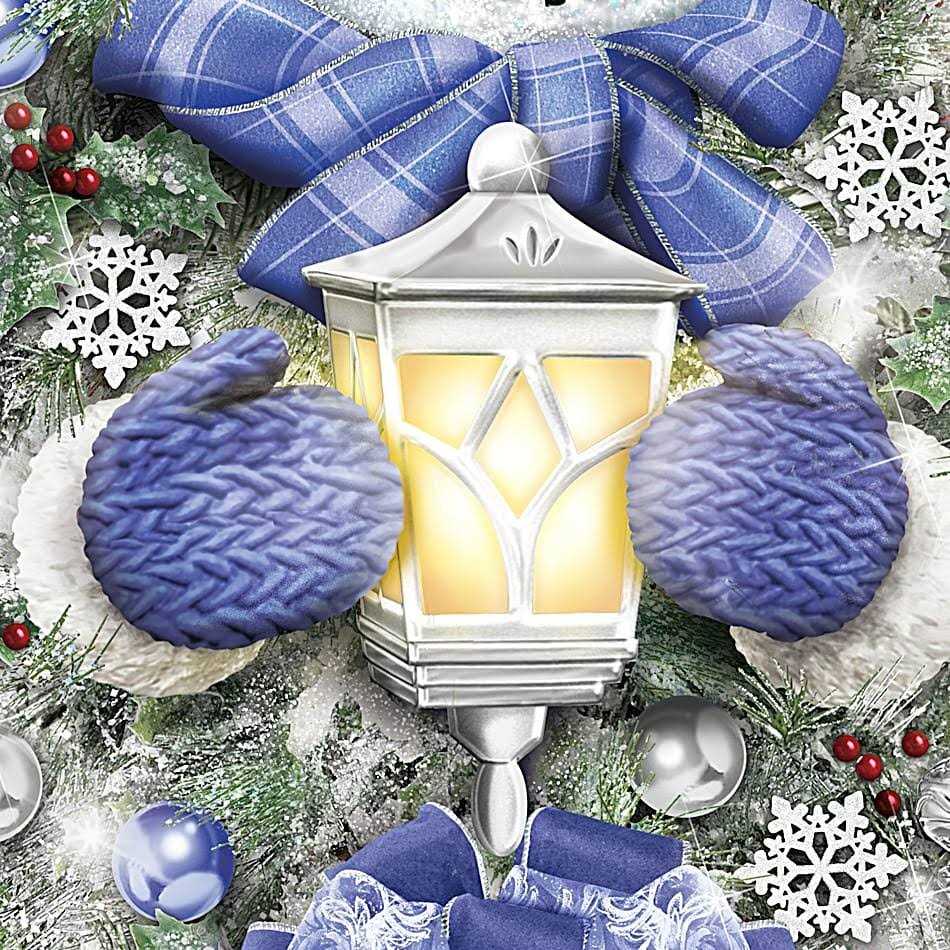 Whether it’s a festively-decorated snowman, the radiance of Thomas Kinkade’s beloved artistry or festive greenery touched with snow, there are many sights that call to mind the warmest memories of winter. Now, you can bring these beloved hallmarks of seasonal cheer home with the Thomas Kinkade A Warm Winter Welcome Wreath. Grandly sized and brightly illuminated, this holiday snowman wreath is the first ever exclusively from The Bradford Exchange. Handcrafted with the look of fresh-cut pine, it is lavishly decorated with silvery, glittery round ornaments, silvery snowflake designs, and lifelike holly leaves and crimson berry clusters – with a dapper, hand-painted snowman sculpture at the center! An impressive two feet high, this Always in Bloom teardrop-shaped wreath is truly magnificent. The merry snowman is bundled up in a real fabric scarf, festive blue bow, snow-glittered top hat, and bright blue “knit” mittens. Plus, he holds a handcrafted lantern – inspired by the distinctive lampposts in Thomas Kinkade’s beloved art – that lights up with golden radiance. Flip the switch to see more sparkling white lights and add a warm holiday glow to the lush evergreen boughs. For added convenience, a built-in timer turns the lights on and off at the same time each night. Brighten your home night after night with the Thomas Kinkade A Warm Winter Welcome Wreath, a first-ever Always in Bloom illuminated holiday snowman wreath exclusively from The Bradford Exchange Impressive 24 inch teardrop-shaped wreath is handcrafted with the look of fresh-cut pine and decorated with silver-plated, glittery round ornaments, silvery snowflake designs, realistic-looking holly leaves, and crimson berry clusters and a double-layered silky blue ribbon A dapper, hand-painted snowman with a real fabric scarf, festive blue bow, snow-glittered top hat, and bright blue “knit” mittens holds a handcrafted lantern inspired by the distinctive lampposts in Thomas Kinkade’s holiday masterpieces It lights up! At the flip of a switch, the lantern glows with warm illumination as sparkling white lights add a joyful holiday glow to the lush evergreen boughs The lights are controlled by a convenient 24-hour timer, so your wreath will turn on and off at the same time each night Requires 3 “AA” batteries (not included) Edition limited to 120 crafting days, so order now! Hand-numbered Certificate of Authenticity Measures 24 inch H; 61 cm H