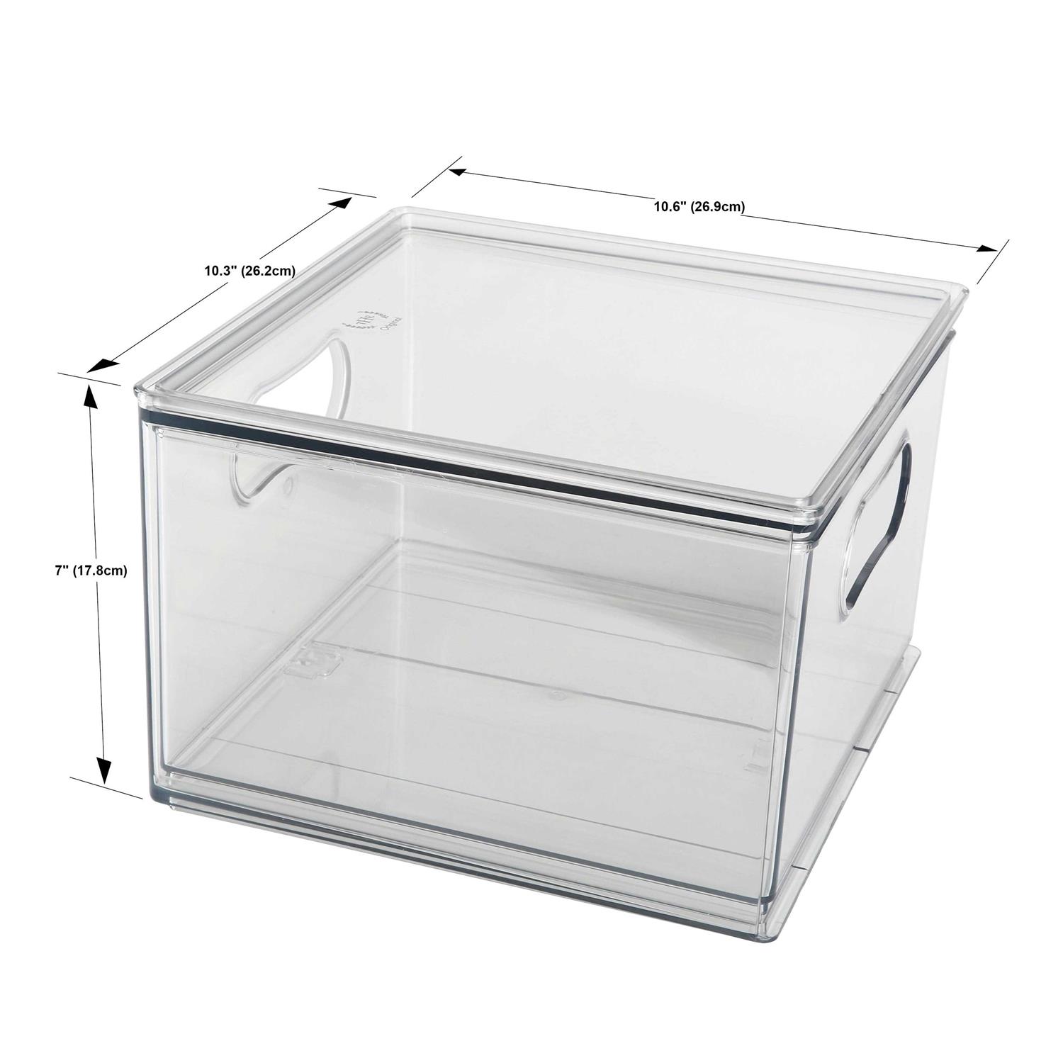 Neatly contain odds and ends with The Home Edit’s Clear Plastic Everything Large Drawer Storage Bin. Measuring a spacious 10 inches by 10 inches by 6 inches, this bin fits perfectly inside most standard drawers to instantly organize contents. The clear construction allows full visibility of items so you can easily find what you need. Use in your home office, laundry room, pantry, bathroom, under your kitchen sink, and more! Mix and match with other Home Edit bins and boxes to build a coordinated system. This versatile The Home Edit’s Clear Plastic Everything Large Drawer Storage Bin tackles clutter at the source for tidier living. From tackling a toy room to freshening up your fridge, our products will help you get organized, and most importantly, keep it that way!