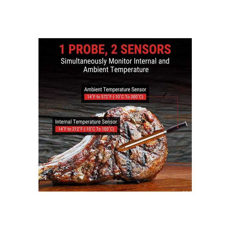 500-Ft Ultra-Long Range: Connected via the most advanced Bluetooth 5.2, this wireless thermometer for grilling can monitor your cooking from up to 500 feet away, truly wirelessly tracking your meal from anywhere! 100% Wire-Free: Meat thermometer digital wireless removes all the tanged wires, makes it a versatile tool for electric rotisserie, smoker, oven, grill, pan-fry or sous vide; Enjoy 100% wire-free cooking and the convenience of no-hassle setup and cleanup 1 Probe, 2 Sensors: Bluetooth thermometer for smoker features a meat temperature probe that can simultaneously measure internal meat temperature and ambient pit temperatures, while still reading highly accurately in just 3 seconds, so you’ll never overcook or undercook again! Easy-to-Use, Multifunctional App: Get real-time alerts on the go with the smart meat thermometer App; Supports custom timer and temperature graphs; USDA-recommended preset temperatures elevate your cooking like a pro every time you fire up your grill with our bluetooth thermometer for grilling Smart Alarm Effectively Manage Your Time: Wireless grill thermometer App takes the guesswork out by estimating how long to cook; Set up ambient pit temperature alarms and cooking pre-alarms that trigger within 5°F/10°F/15°F of the target temperature, and both your smartphone and the booster will beep to remind you, never overcook! TempSpike best meat thermometers with smart app! Whether you’re a home cook or a pit master, the TempSpike bluetooth thermometer for grilling gives you real-time data on your cook to ensure you get perfect results every time. connected via the lastest bluetooth 5.2 technology, bbq thermometer wireless bluetooth emits the most stable radio frequency to monitor cooks from up to 500ft away. leave-in grill thermometer digital probe keeps your grill clear and achieves 100% wireless cooking. super-long bluetooth range plus multifuctional app makes the blue tooth meat thermometers edge out the comtender, perfect for Oven, Grill, Sous Vide, BBQ, Smoker, Rotisserie, etc. barbecue thermometer range: probe to booster: 150ft, booster to app: 500ft internal temperature range: 14 ̊F to 212 ̊F (-10 ̊C to100 ̊C) ambient temperature range: 14 ̊F to 572 ̊F (-10 ̊C to 300 ̊C) Accuracy: ±1.8 ̊F (±1.0 ̊C) from 14 to 212°F (-10 to 100°C),otherwise ±2% timer: 23hr 59min 59sec rechargeable uses: Oven, Grill, Sous Vide, BBQ, Smoker, Rotisserie, etc. Preset USDA-Approved Temperatures for: Beef, Fish, Ground Beef, Ground Poultry, Lamb, Pork, Poultry, Turkey, Veal Various doneness levels: Rare, Mediem Rare, Medium, Medium Well, Well done package includes: 1x grill meat thermometer booster 1x bluetooth temperature probe for smoker 1x USB Charging Cable 1x User Manual